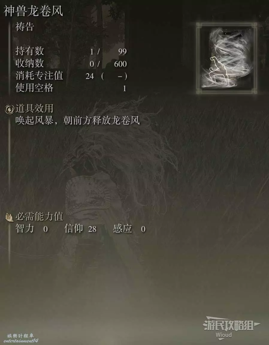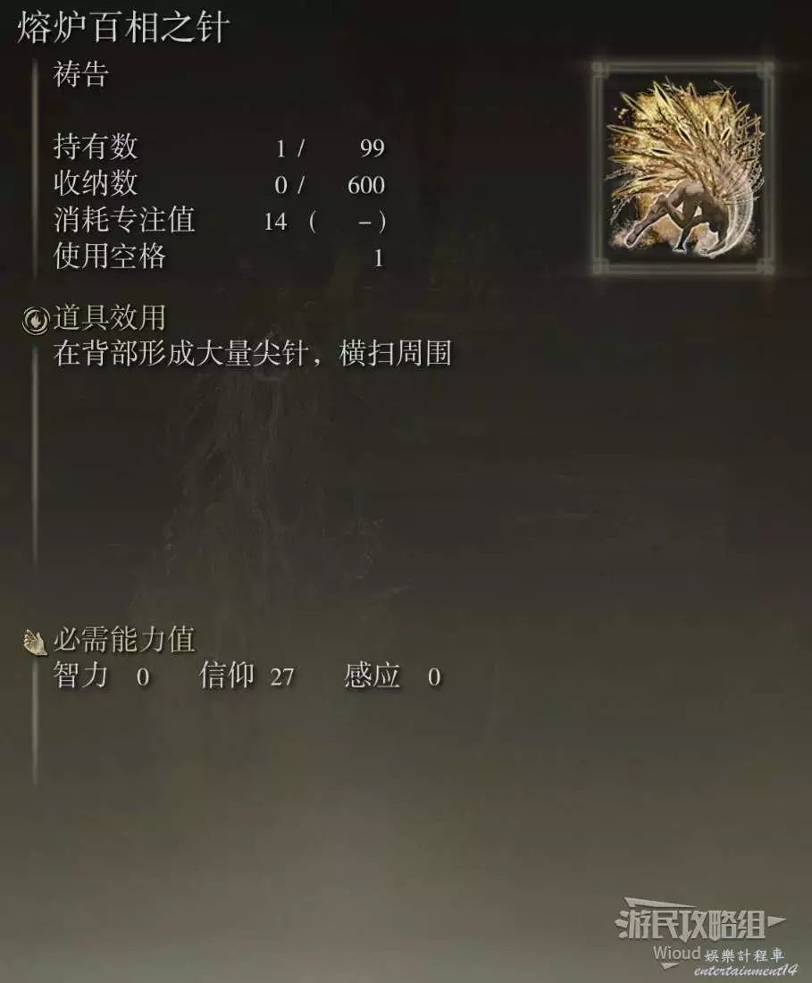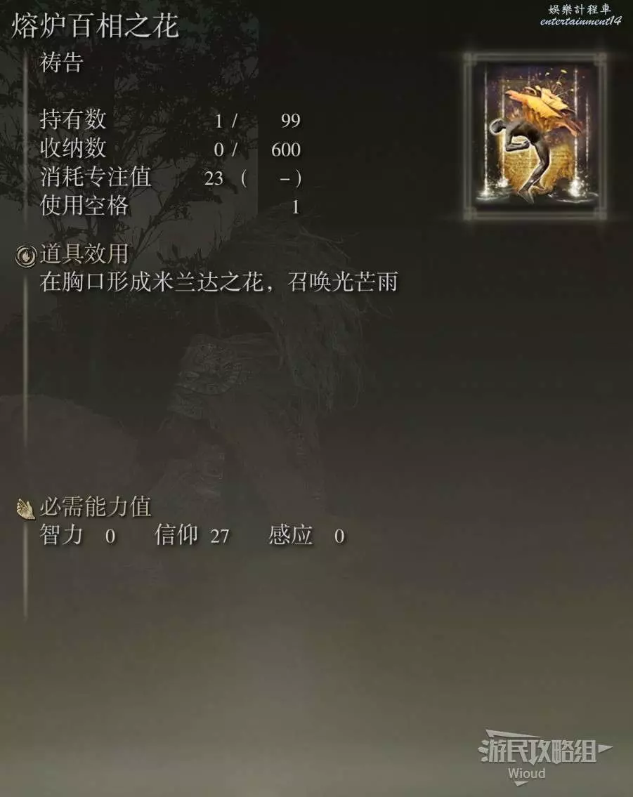 此禱告是從地圖右上角的巫者村處的小黃金樹位置直接拾取獲得。