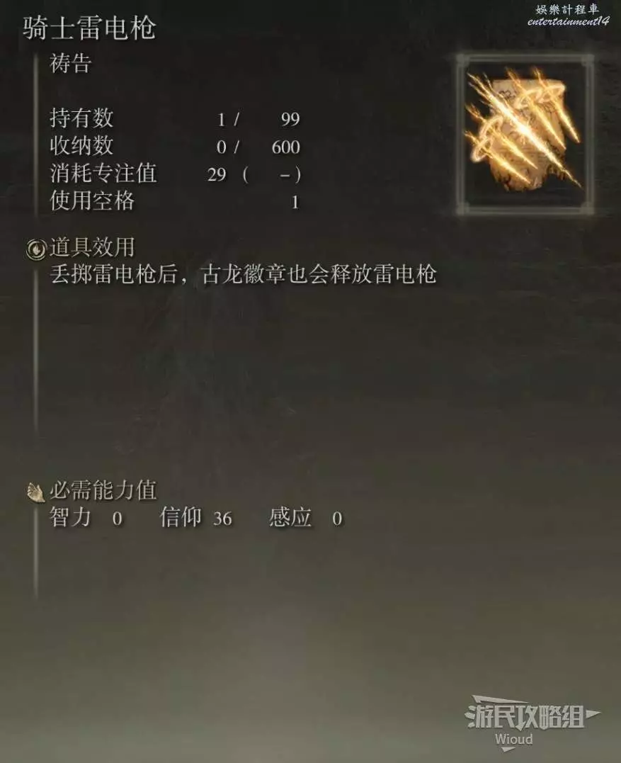拾取盡頭處屍體上的光點即可獲得禱告【騎士雷電槍】。