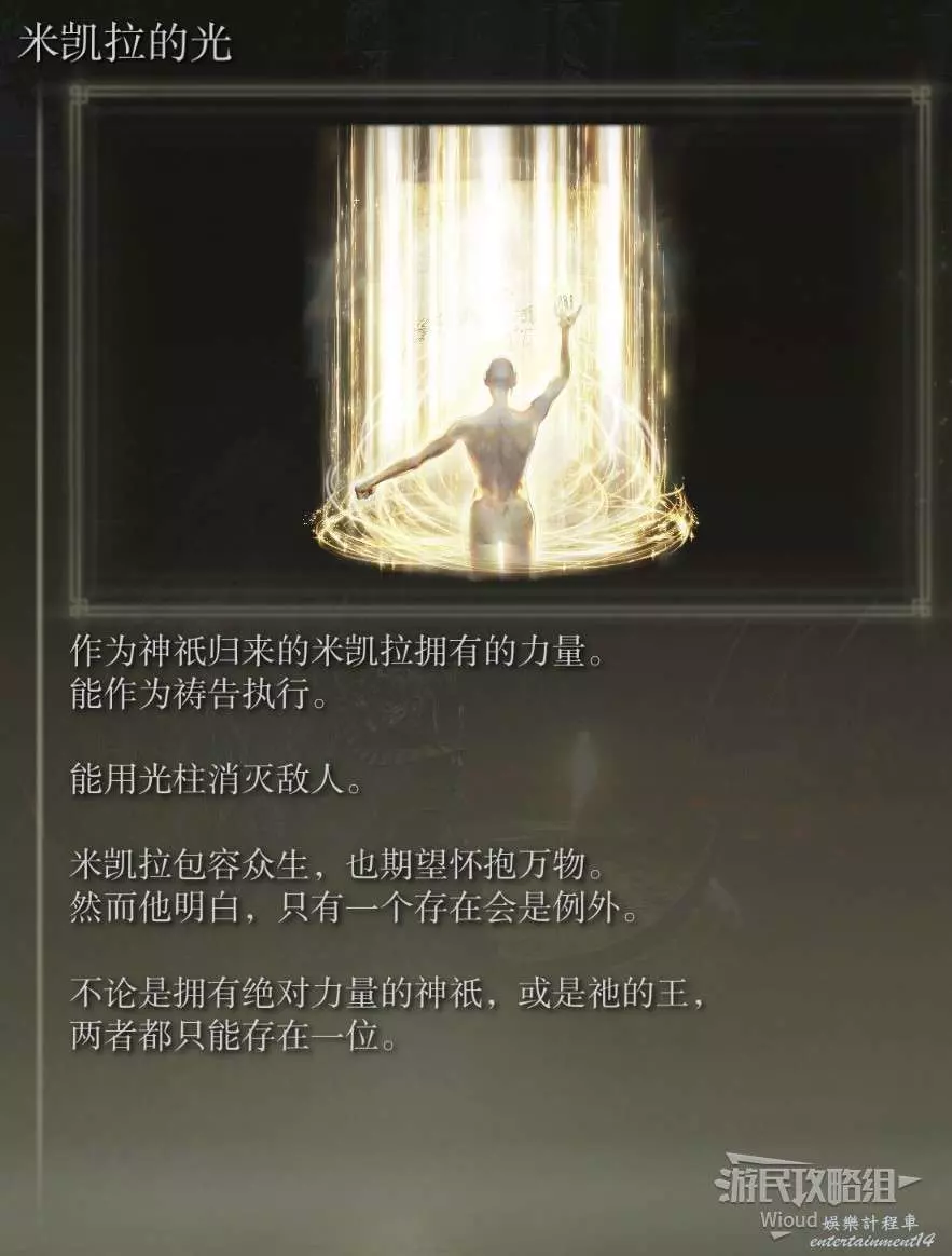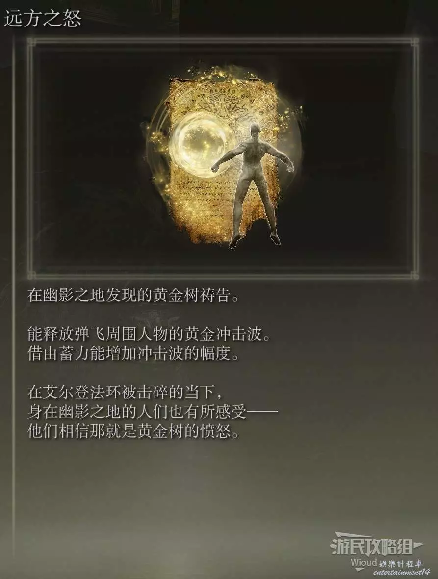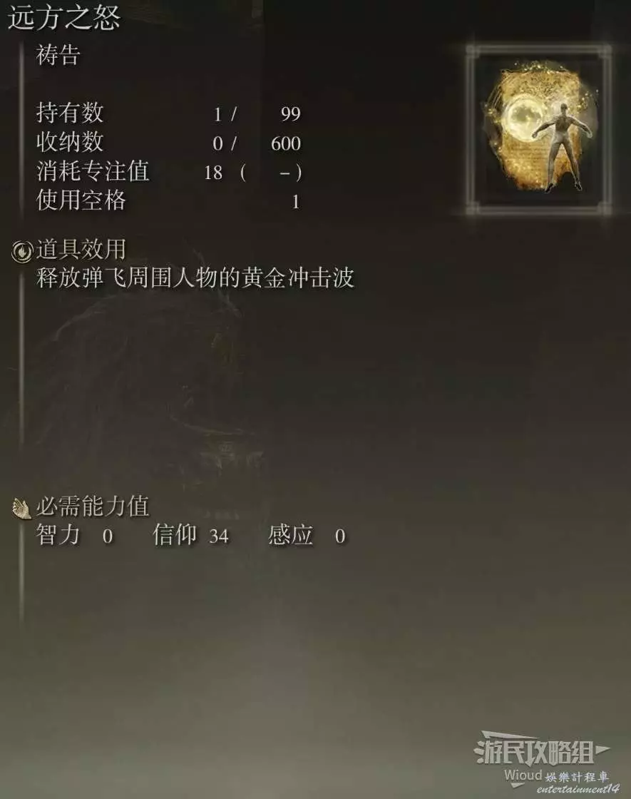 此禱告需要擊敗DLC主線的最終BOSS“約定的王”拉塔恩獲得追憶,在大賜福兌換獲得。