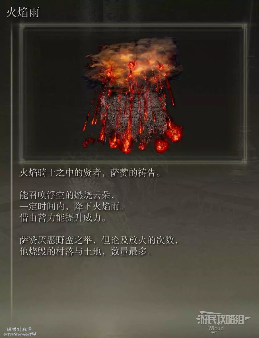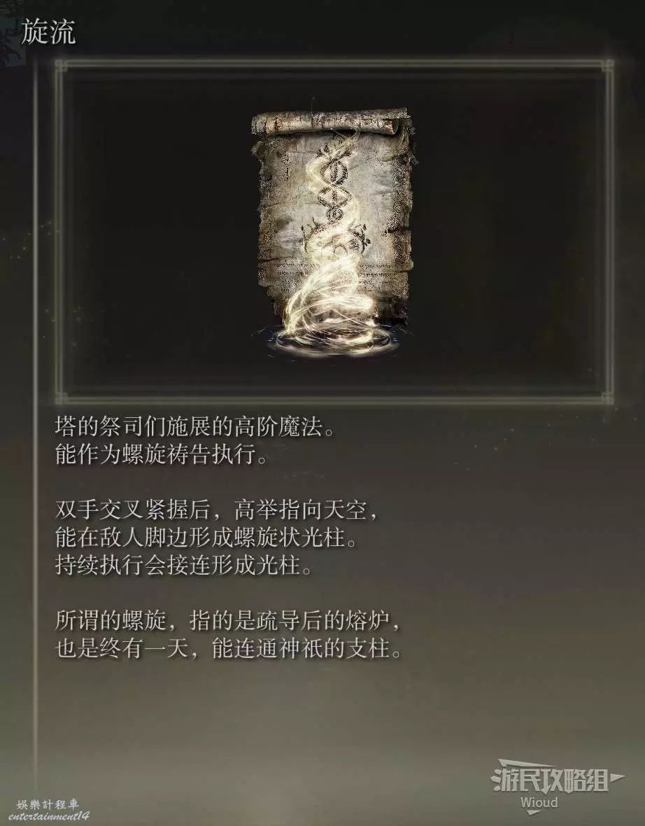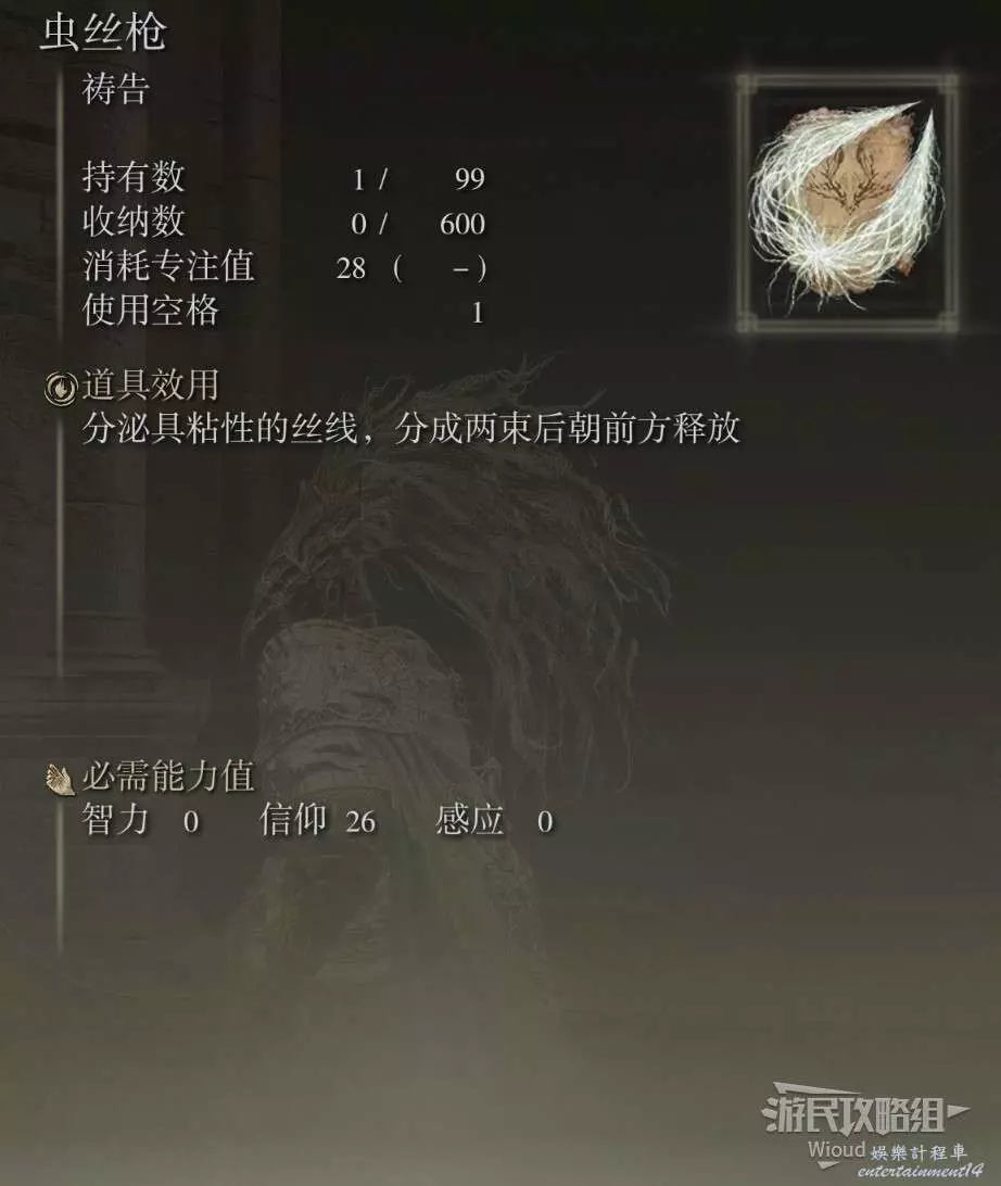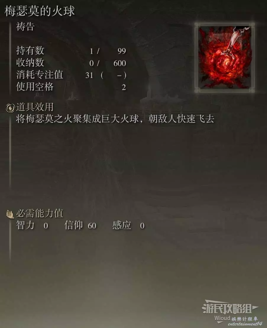 此禱告需要擊敗西邊城牆盡頭,勞弗古遺跡入口前的火焰騎士獲得。