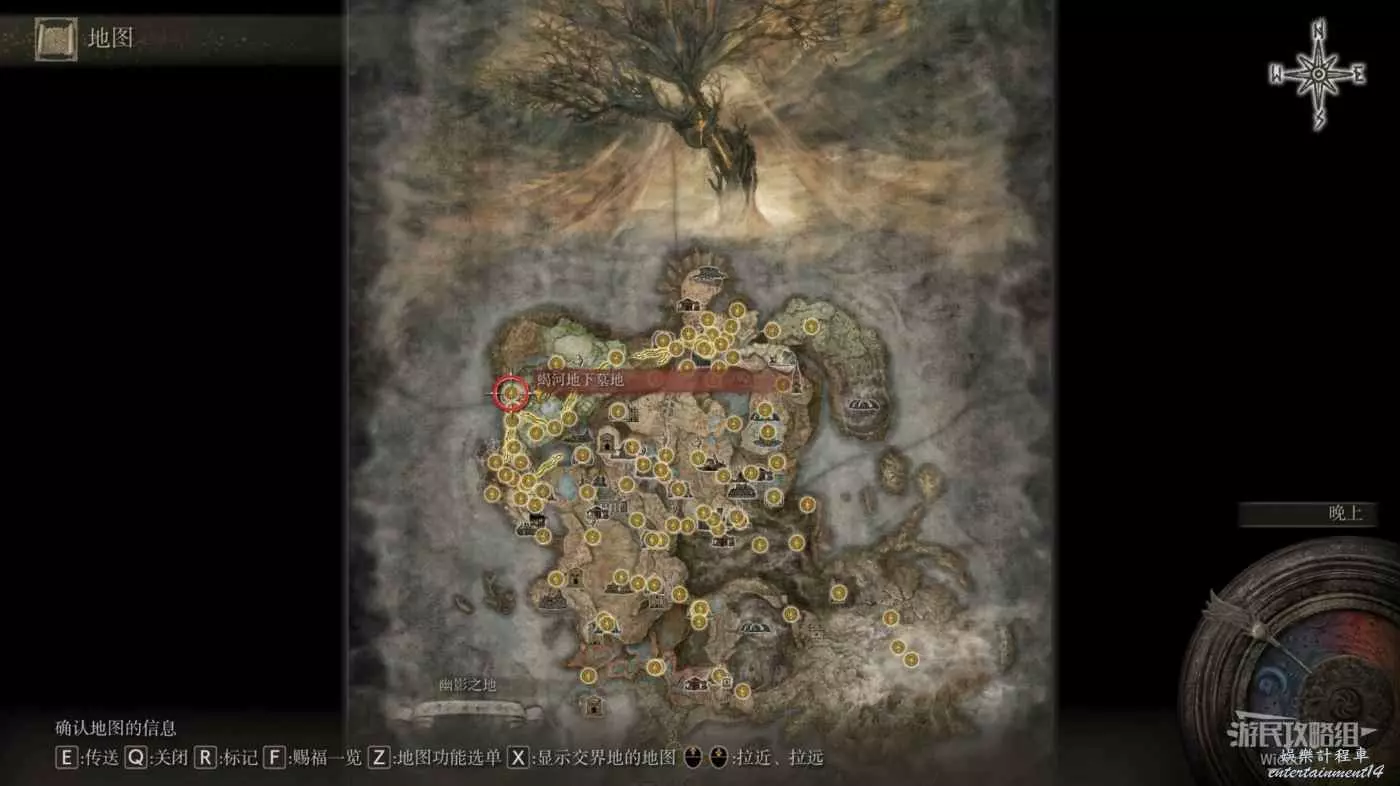 此時繼續往地圖左下走,依次啟動賜福【神殿鎮廢墟】與【峽谷北方】,再往左邊走一段距離就能到蠍河地下墓地的位置。