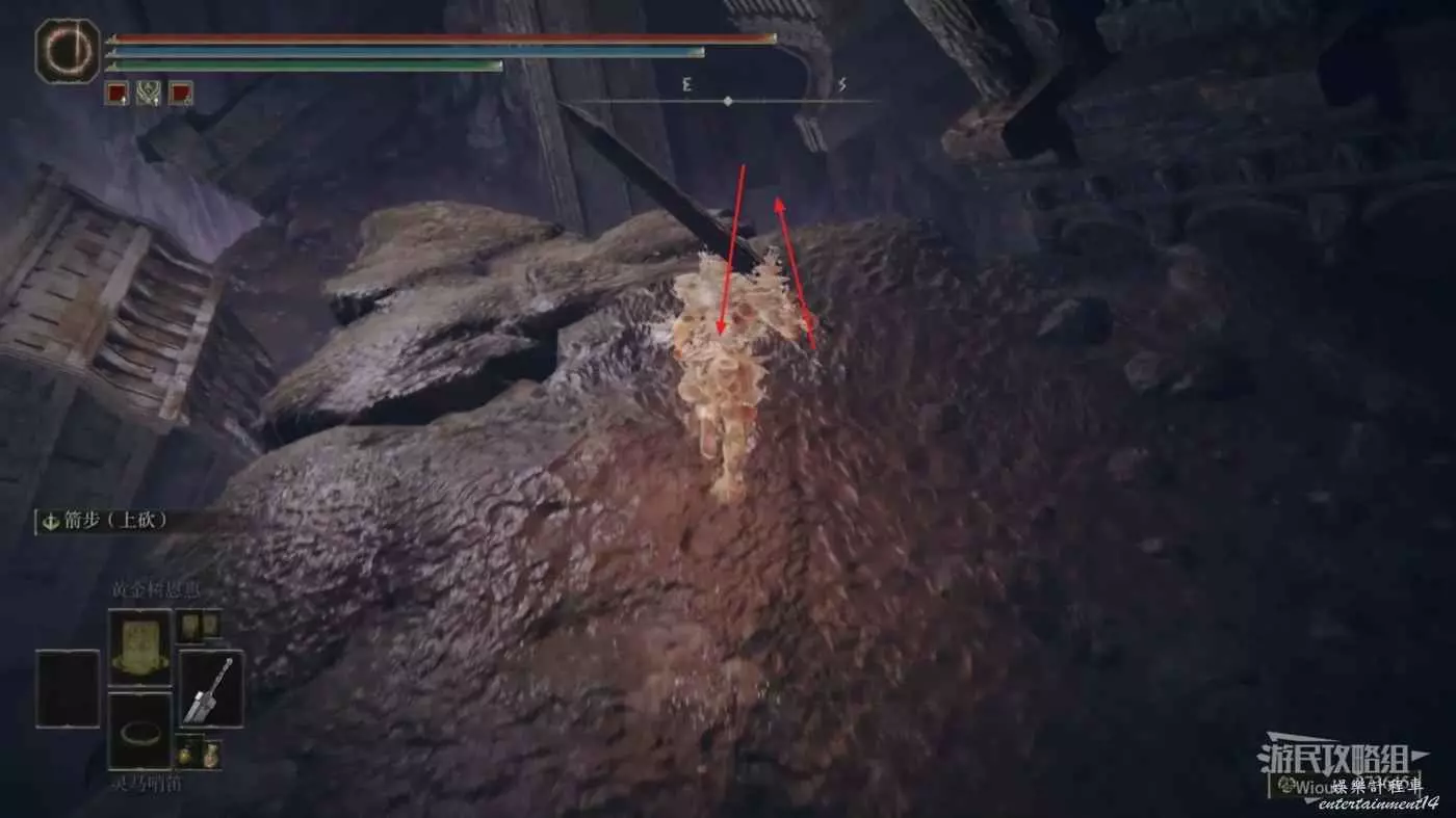 跳到地洞的最底層,沿著右側的洞窟走到地圖另一邊。