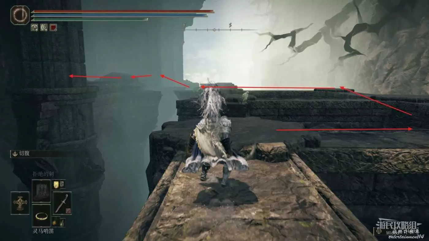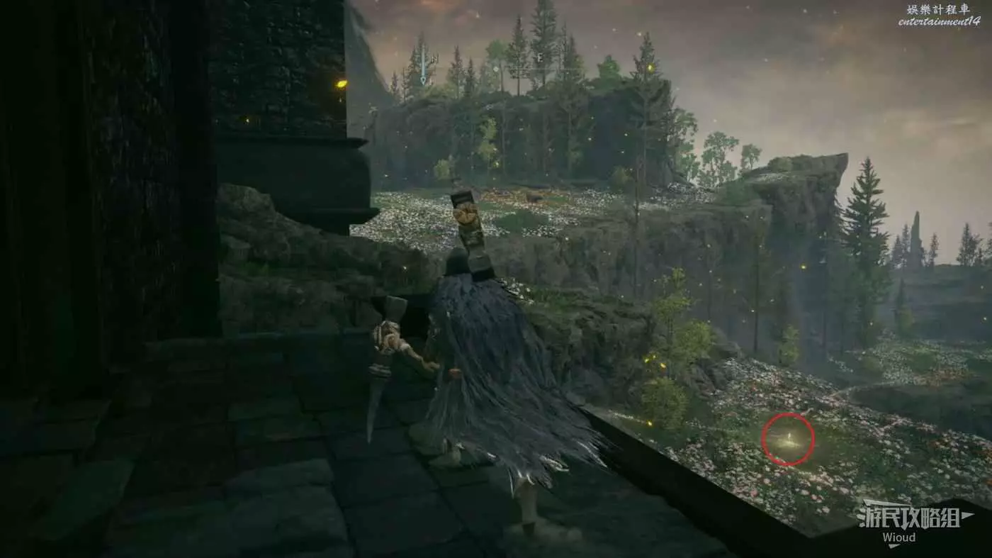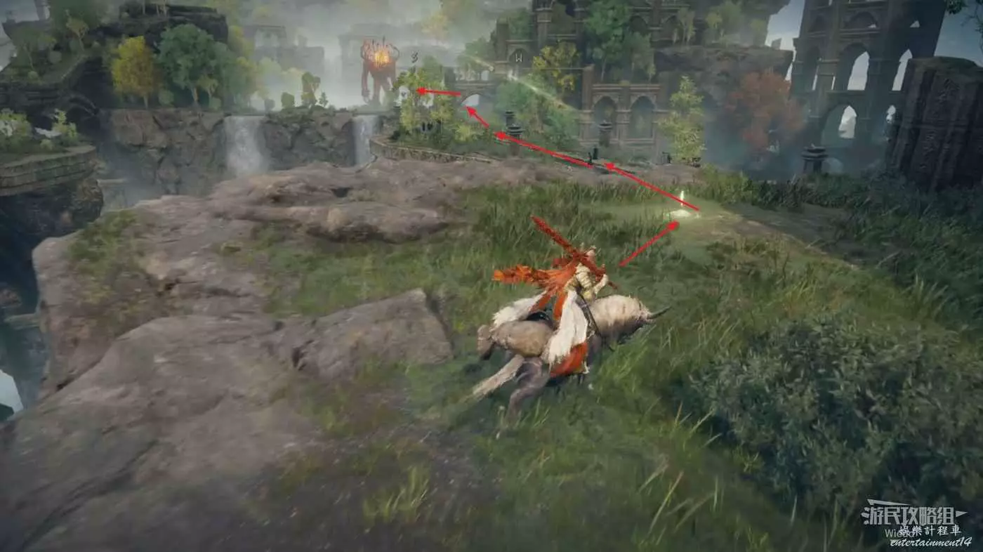 然後從第二個賜福繼續往右邊走,按照下圖路線走到盡頭處的懸崖。