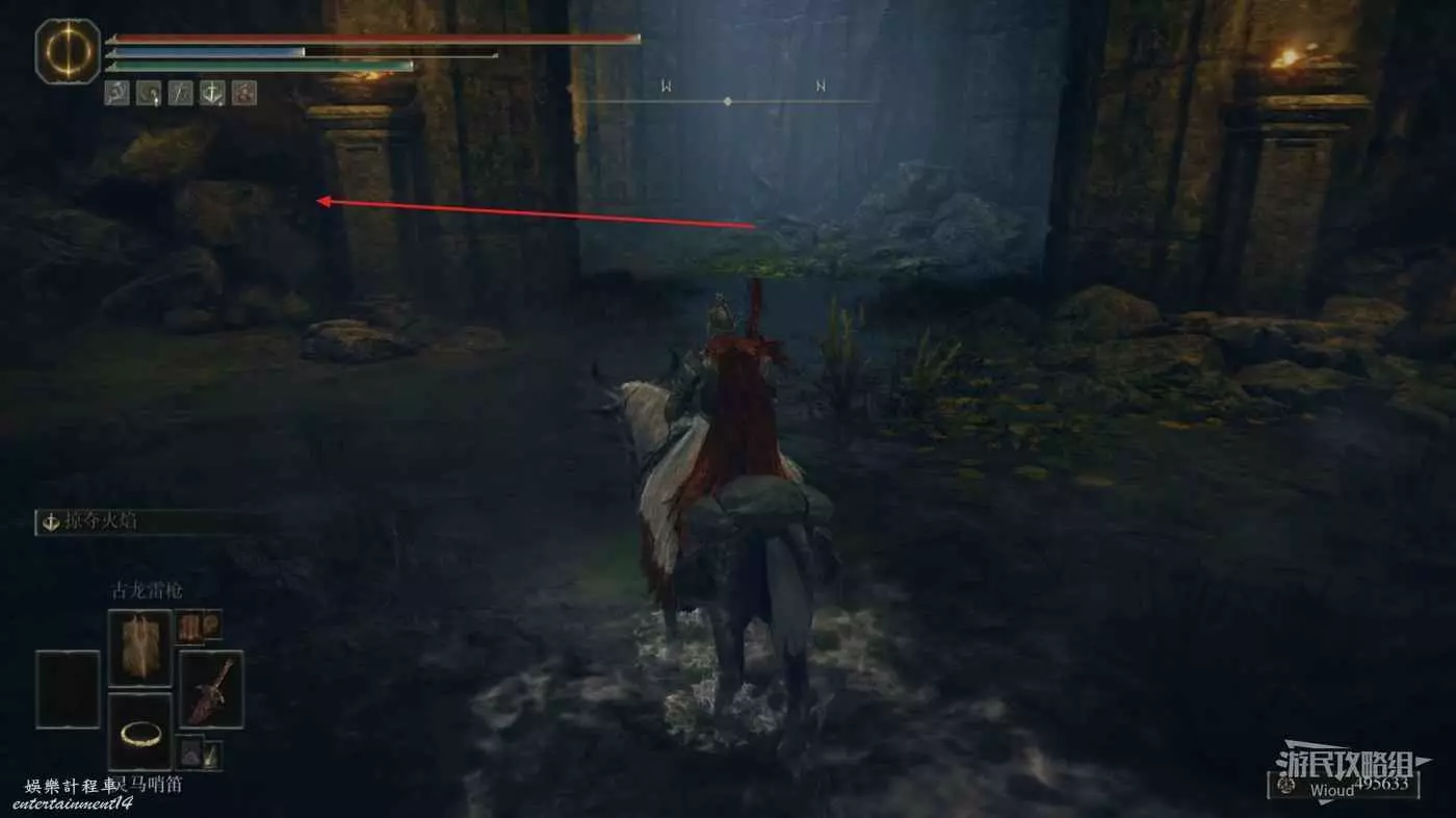 從賜福【穆斯廢墟】出發,往右上角水池處的洞穴走。