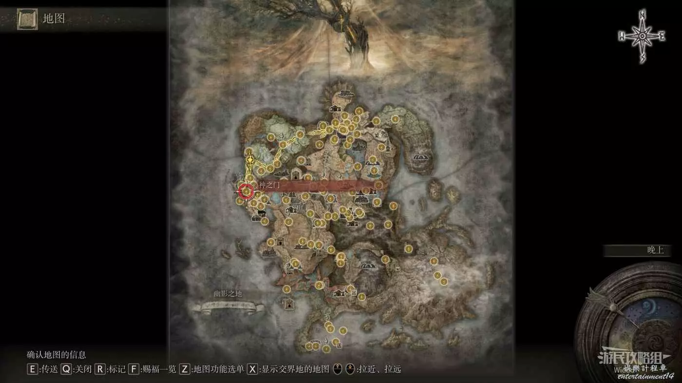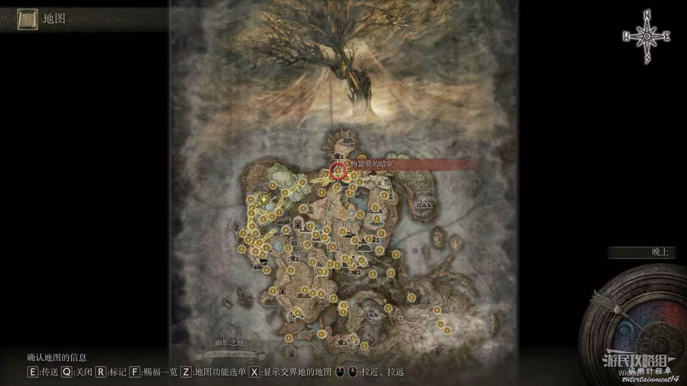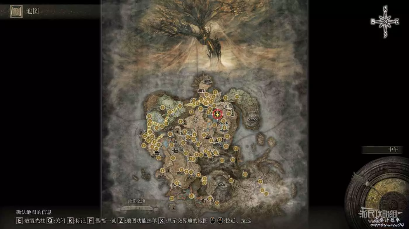 然後從賜福處開始,走到右邊的巫者村即可看到目標小黃金樹的位置。