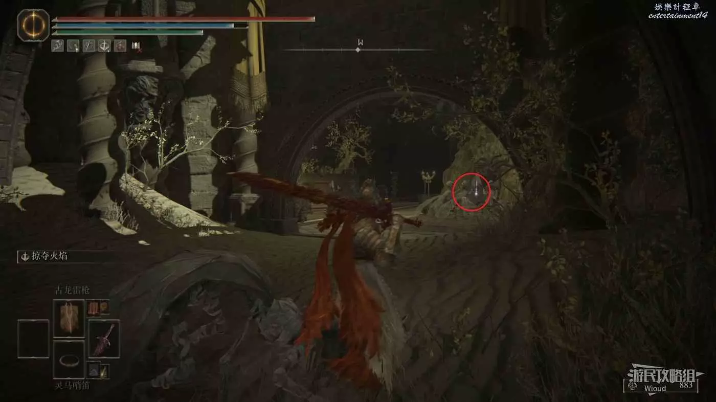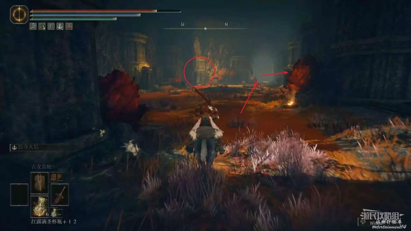 從賜福【勞弗古遺跡(西方)】,這個賜福點出發,進入前方的遺跡建築內。