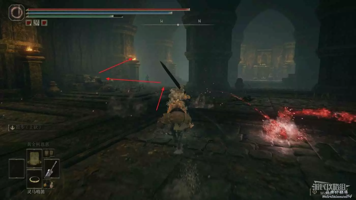 補充狀態之後往賜福旁邊的遺跡入口走。