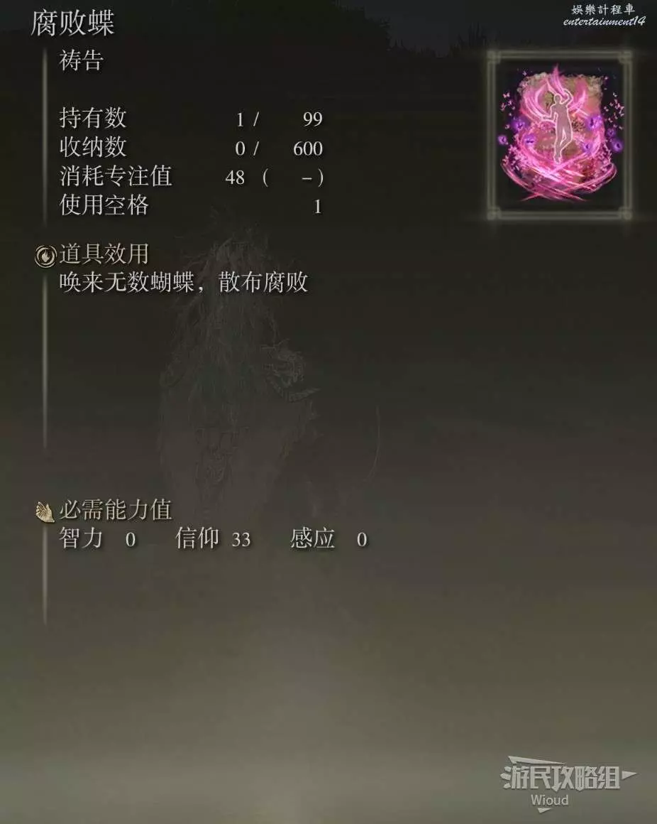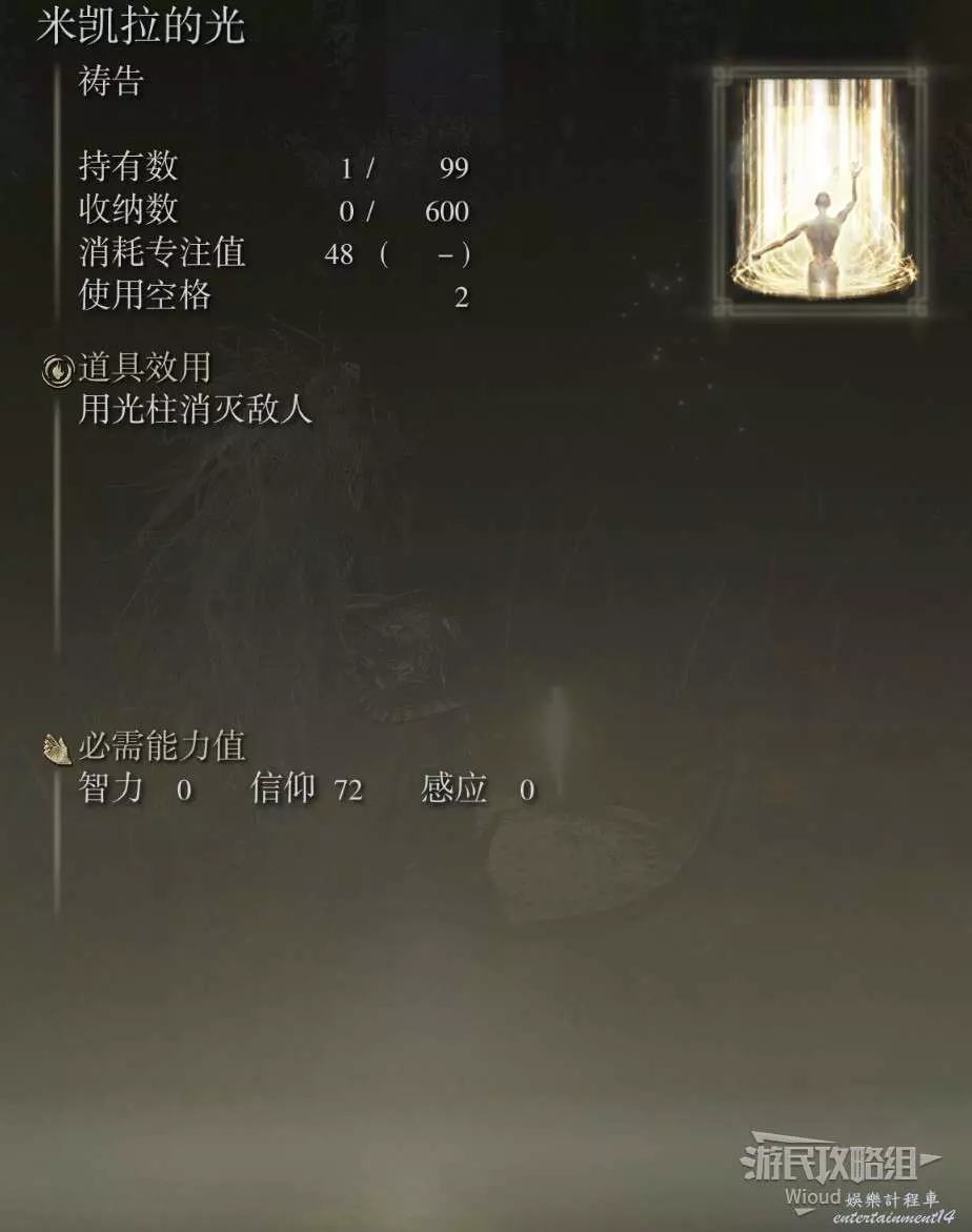 此禱告需要擊敗幽影城的BOSS梅瑟莫,使用追憶在大賜福兌換獲得。