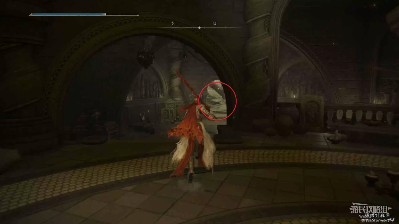 從賜福【保藏庫(內區)】往左走,爬左側的長樓梯到達上層。