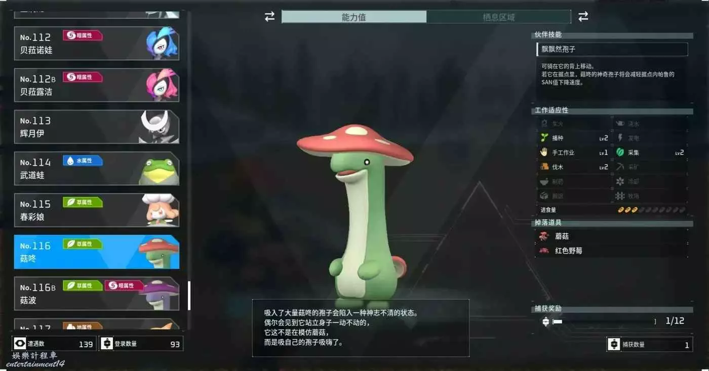 (如果實在抓不到變種的毒菇唐龍也可以抓只蘑菇唐龍並為他凹上一個【夜行性】的新詞條也可以晚上不睡覺)