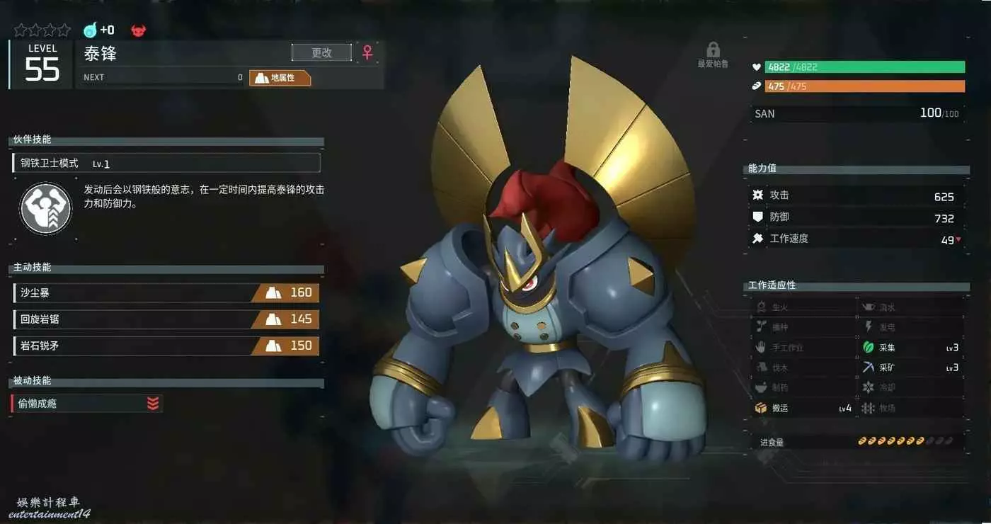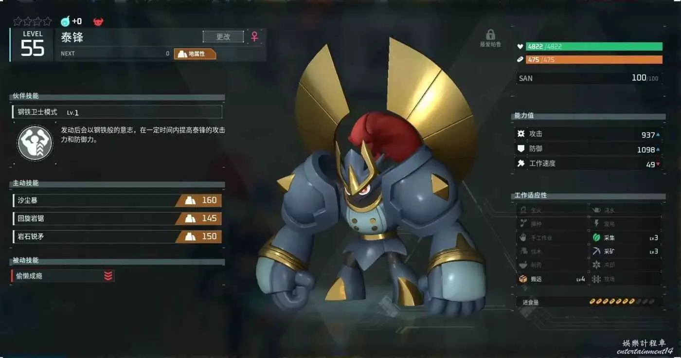 蘑菇唐龍和他的亞種也是據點的好手,其技能能減少據點帕魯的SAN值消耗。同樣建議每個據點放上一隻滿星