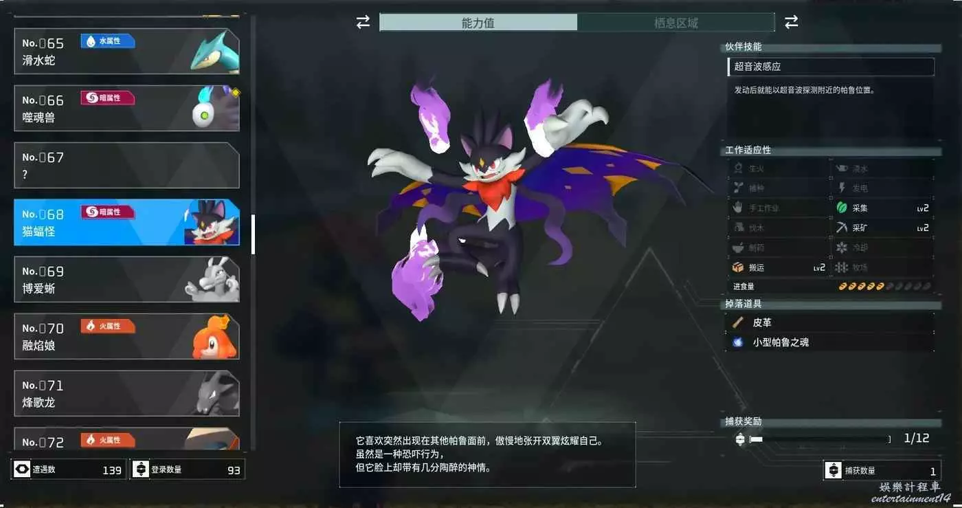 貓蝠怪的夥伴技能能探測帕魯偽裝成寶箱的旺財也同樣可以發現