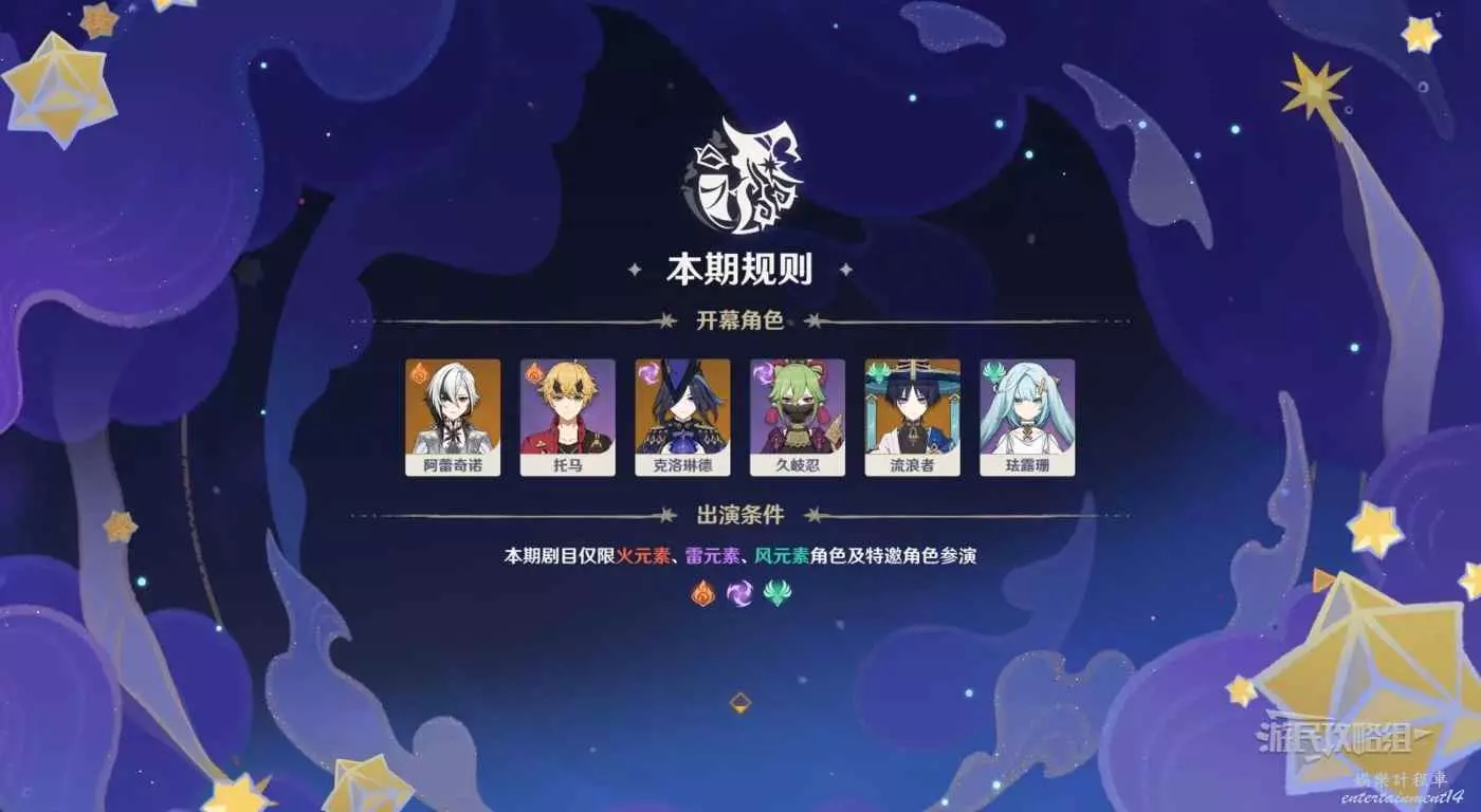 - 玩法簡述:本活動是有角色限制的高難度秘境,會限制特定元素和特定角色,可以借用好友的角色來戰鬥,戰鬥期間可用角色逐步解鎖,戰鬥前可以獲得各種增益