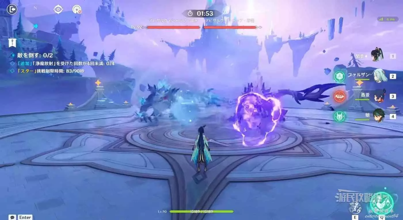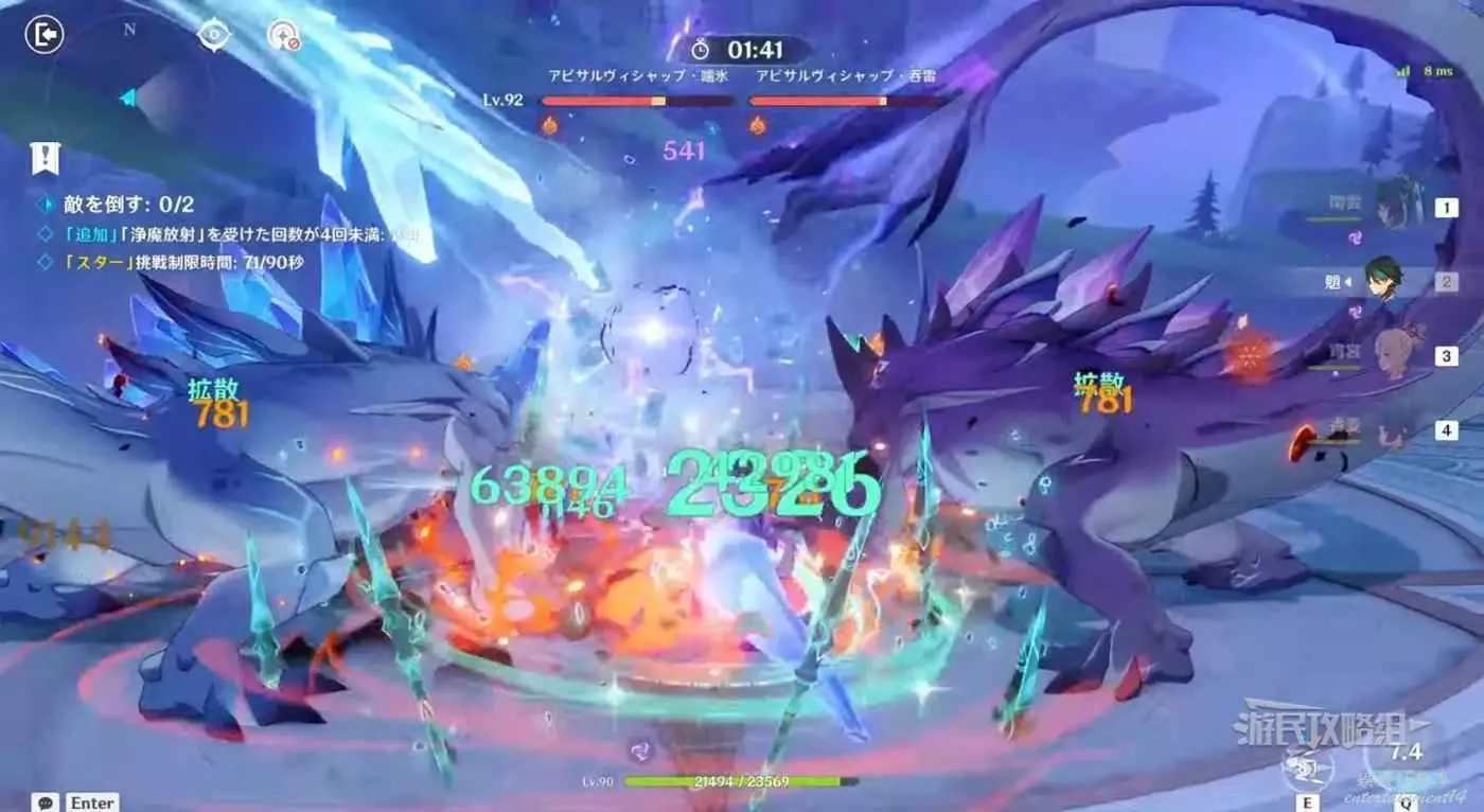 深海龍蜥·齧冰&吞雷(第6幕):需要同時擊破,建議帶範圍攻擊型的角色,或者高傷角色自行調整。推薦角色為魈、閑雲、艾爾海森、嘉明。