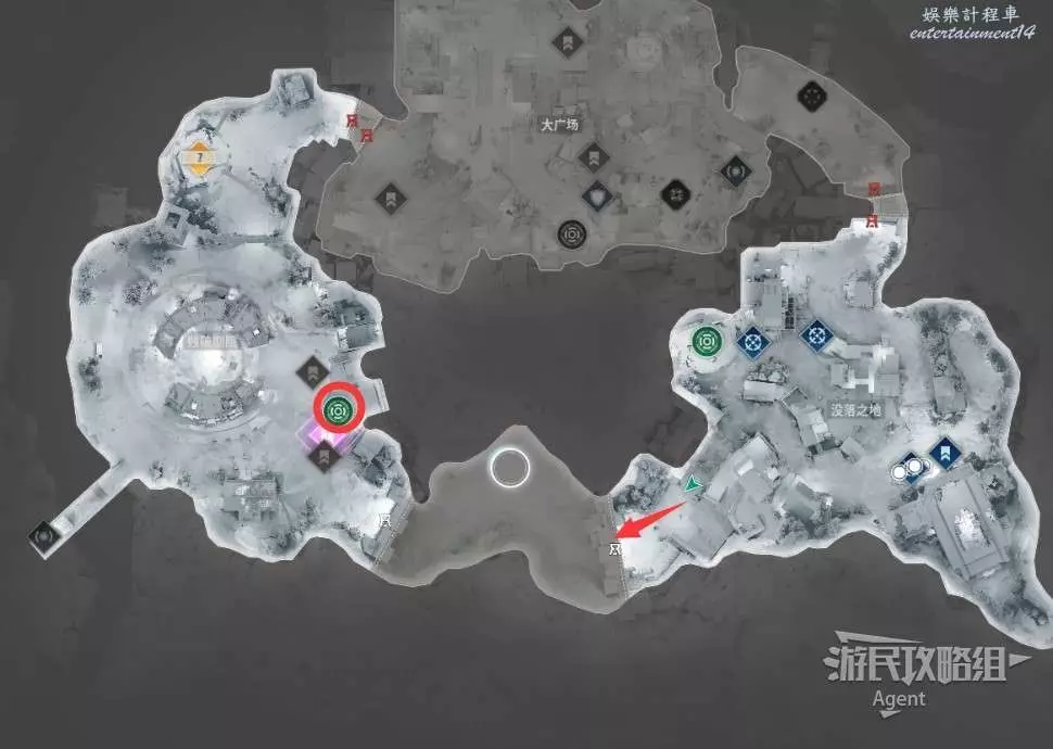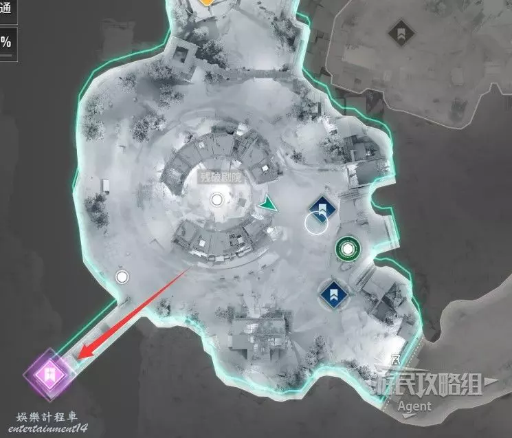 然後新地區“殘破劇院”解鎖,可以直接從綠色圓圈傳送過去,也可以走大門。