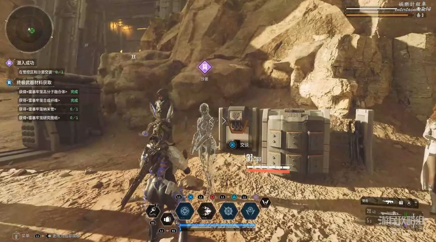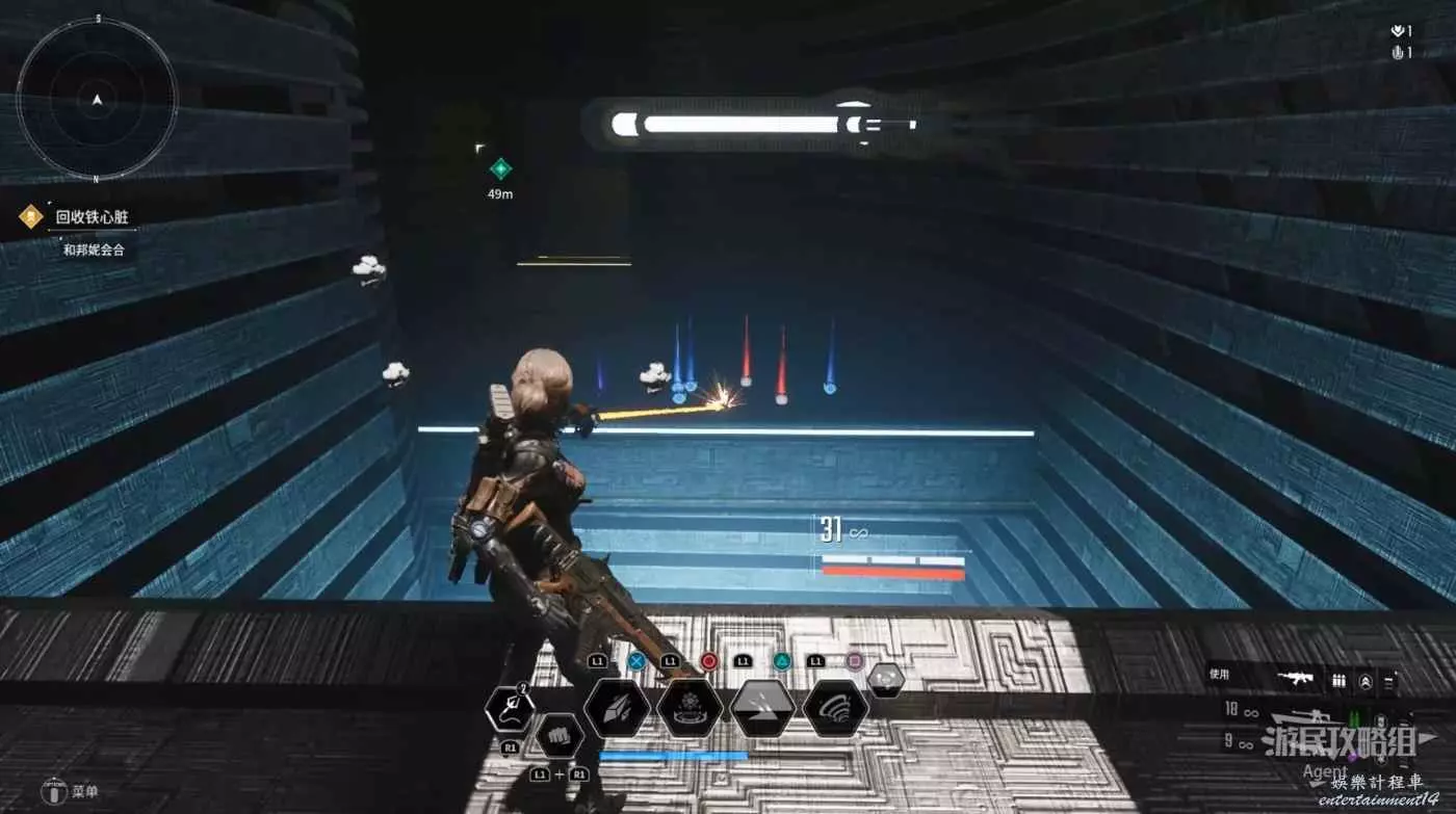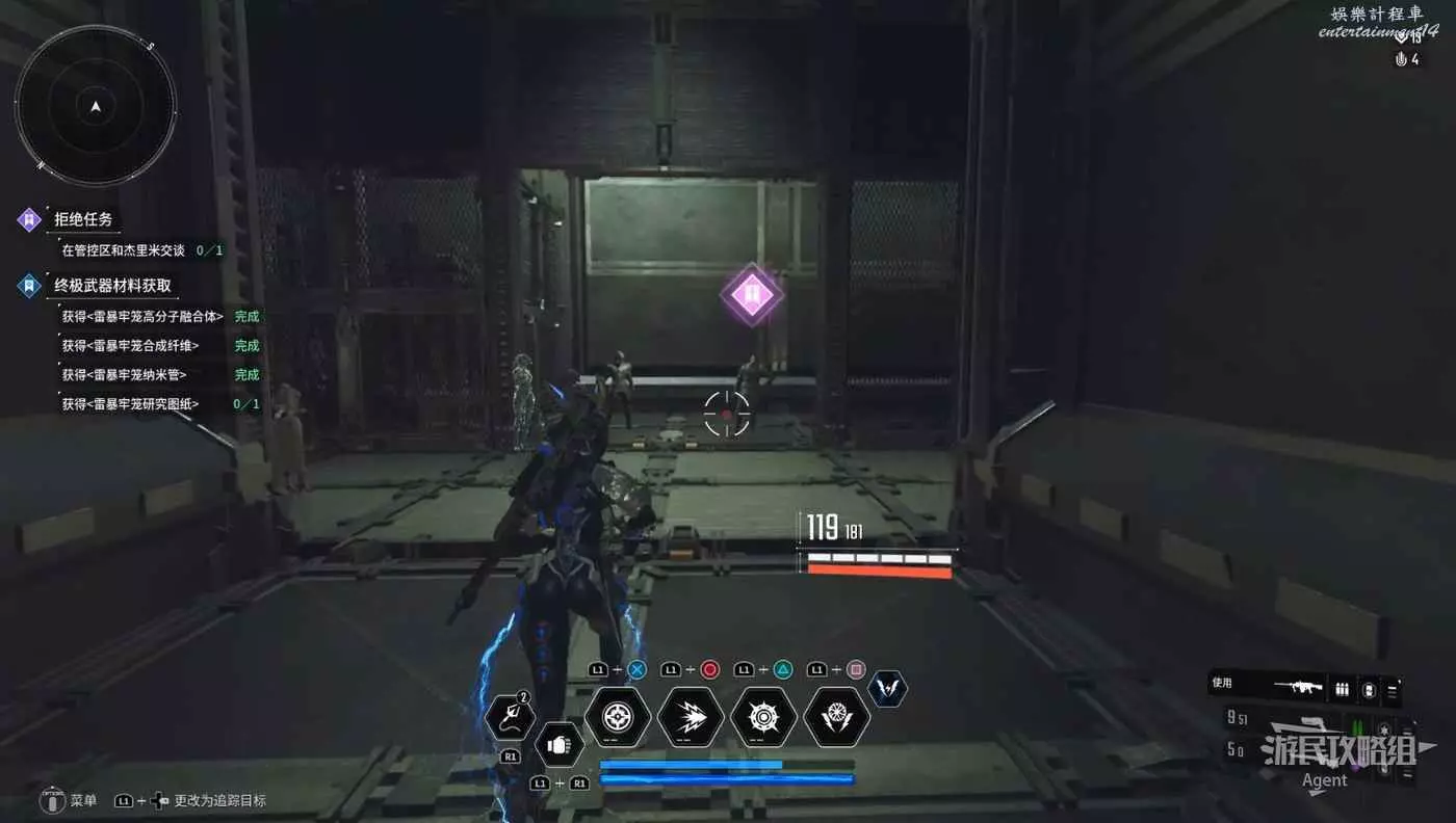 其中,“瓦爾戈斯資料發射器”任務,黑入資料庫後,要在旁邊受著,直到上方進度條到100%。