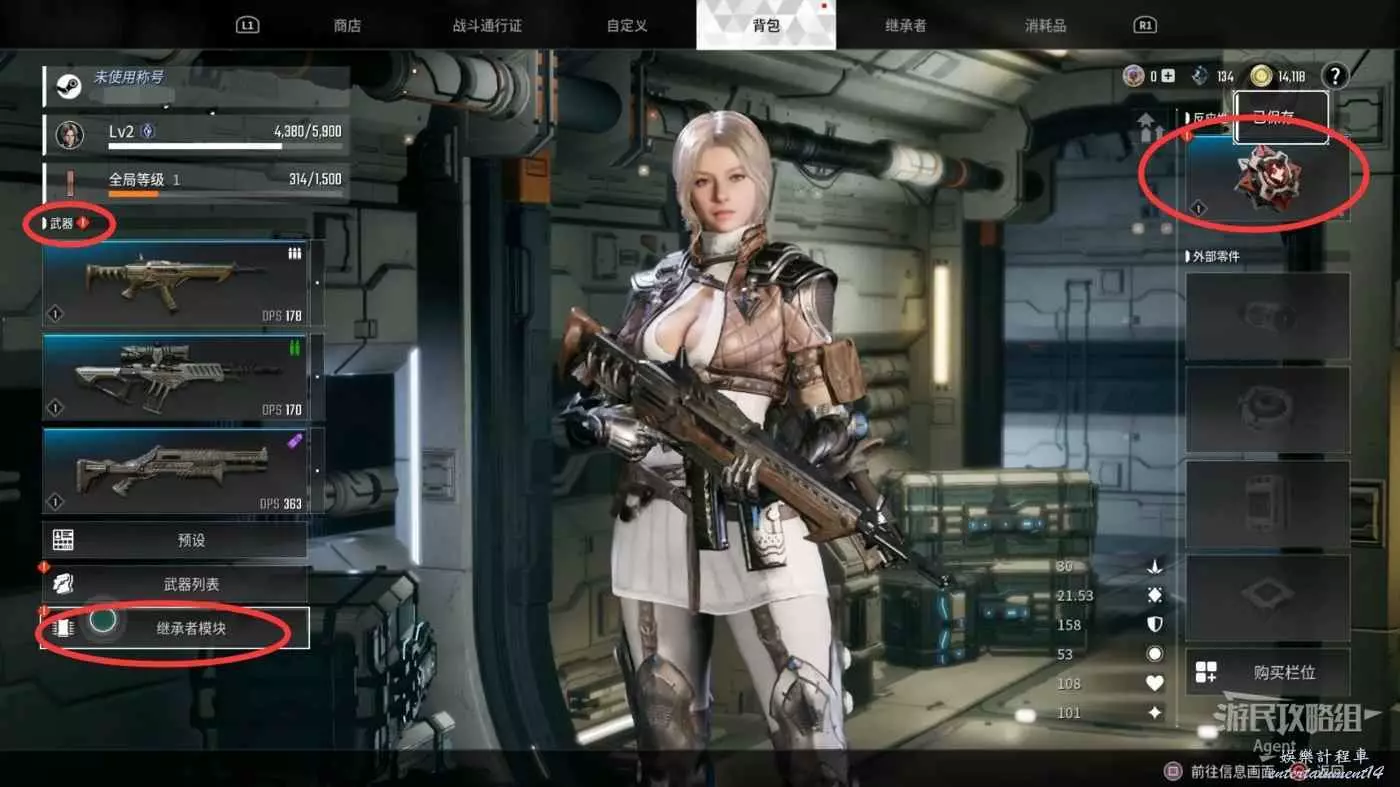 獲得新的武器、繼承者模組、反應堆後,打開背包裝備上。