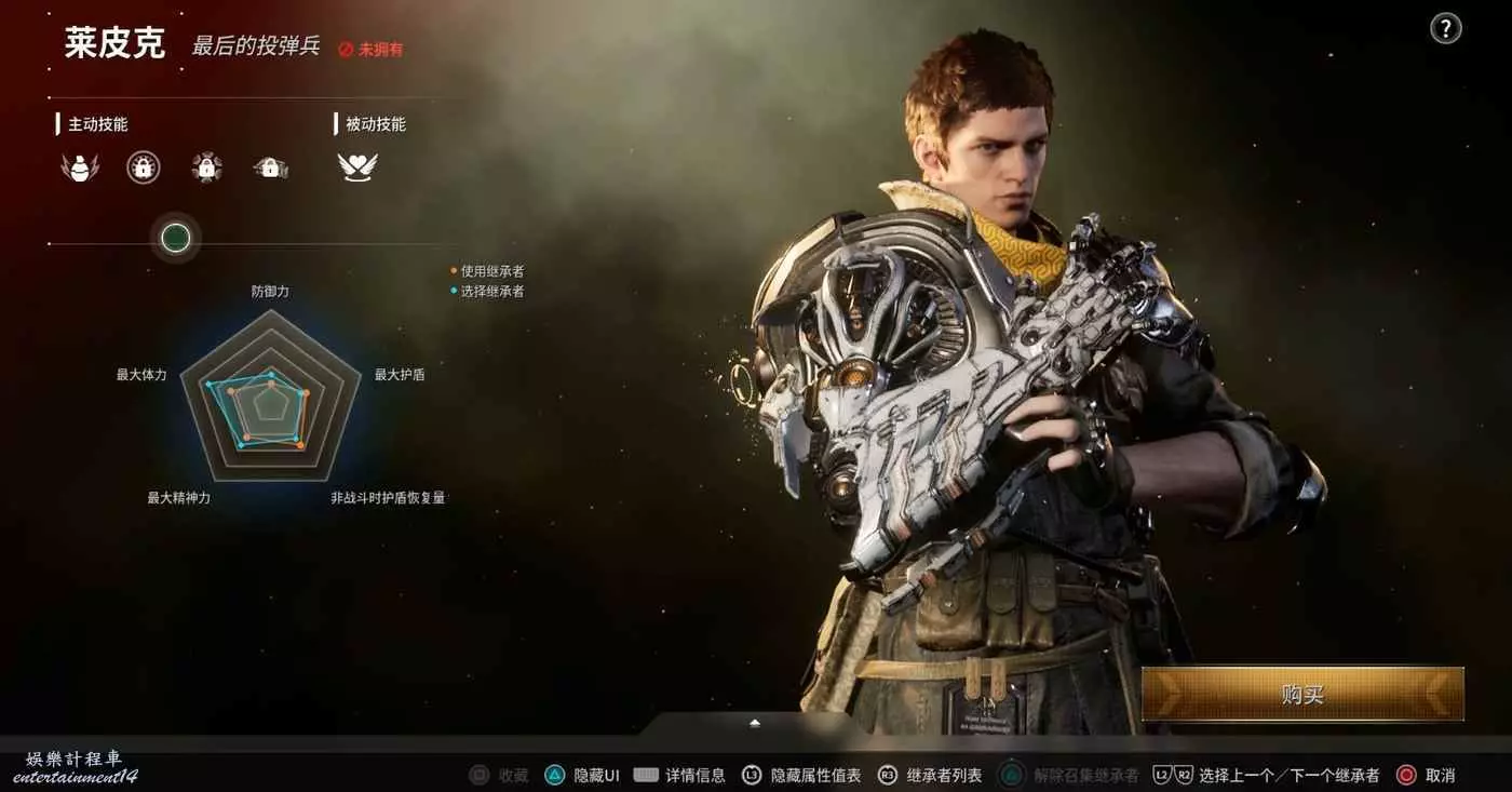 萊皮克之所以被選為第一個終極繼承者,是因為當時以高重現率復原的先覺者裝備最適合萊皮克的特點。被命名為“不屈騎士”的戰鬥裝備由模組化全身防護服和一體式視覺增強功能頭盔組成,從這個設計來看,“不屈騎士”看起來更像是先覺者機動部隊用過的裝備,而他們的任務與第44投彈兵部隊的任務完全一致。