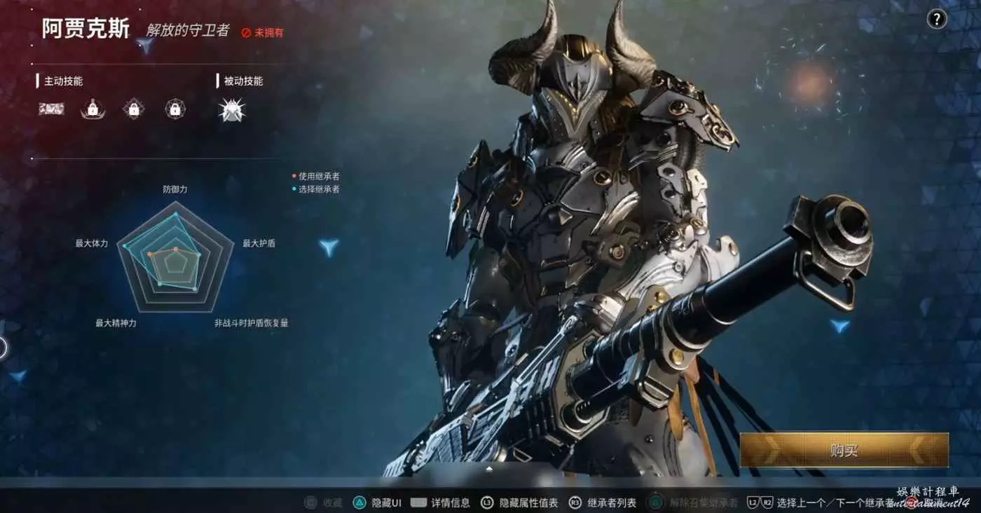 以最早的繼承者“雷利”之名命名的雷利MK.5虛空能量裝甲是專門為虛空探險開發出來的軍用套裝。雖在10年後的今天,它已成為老式裝備,但唯一剩下的這套劣質套裝對於阿賈克斯這位繼承者來說反而是最佳裝備了。