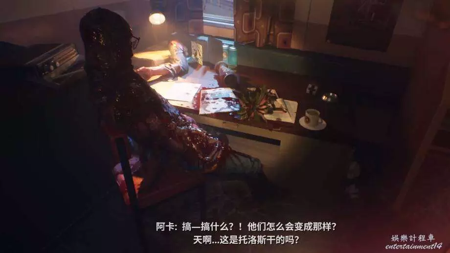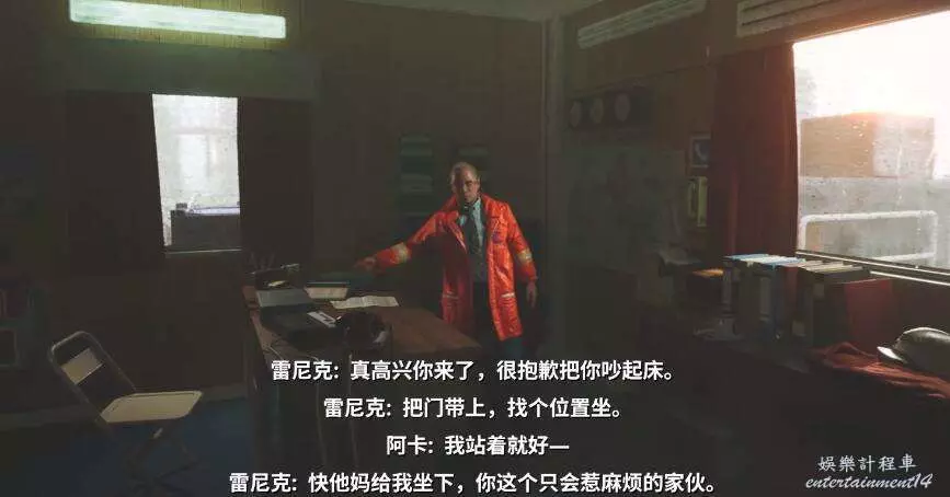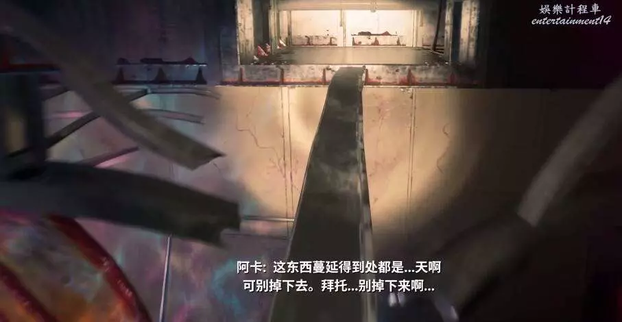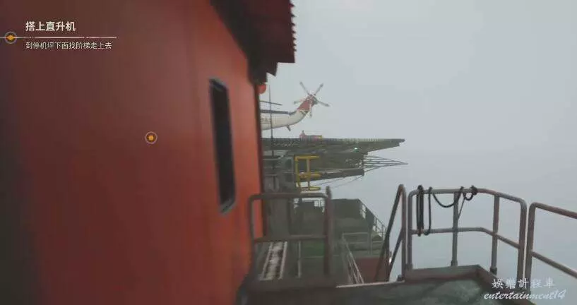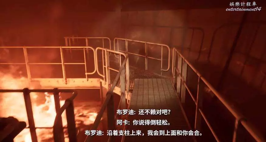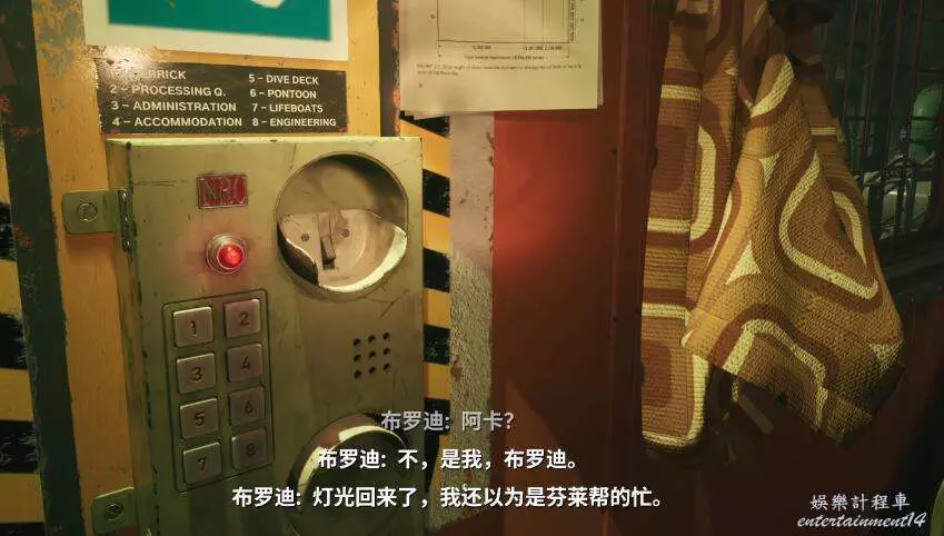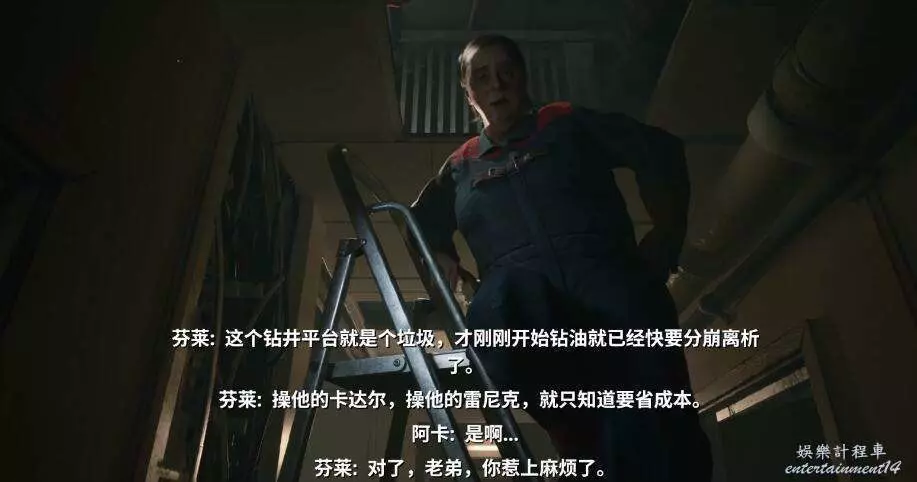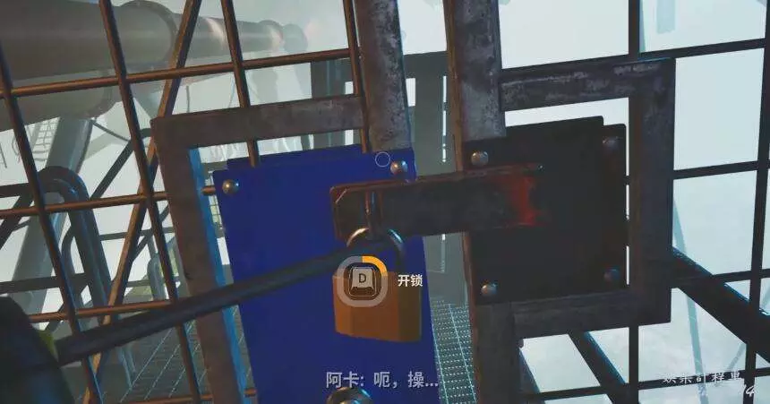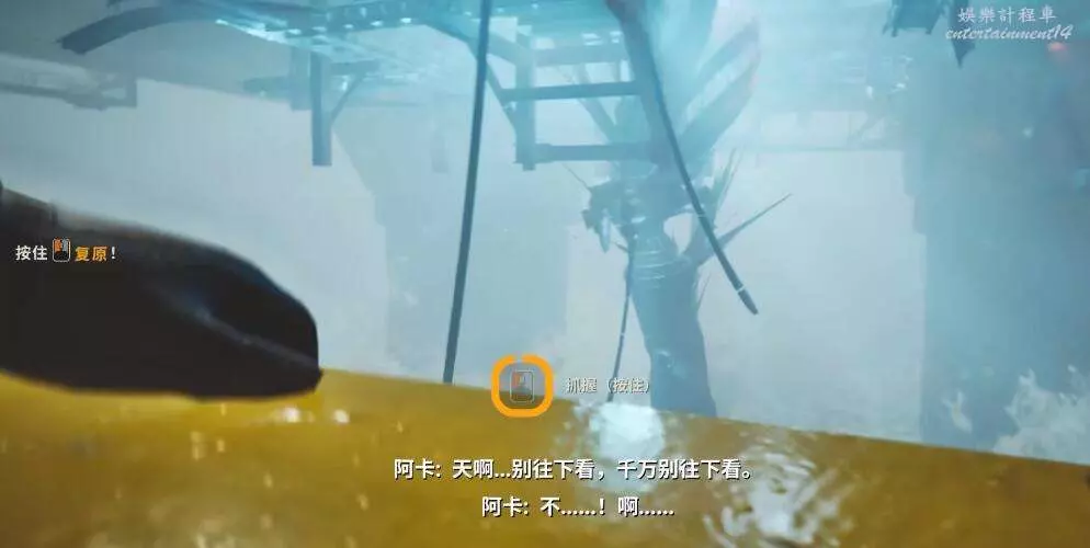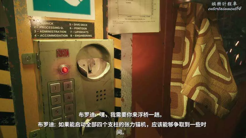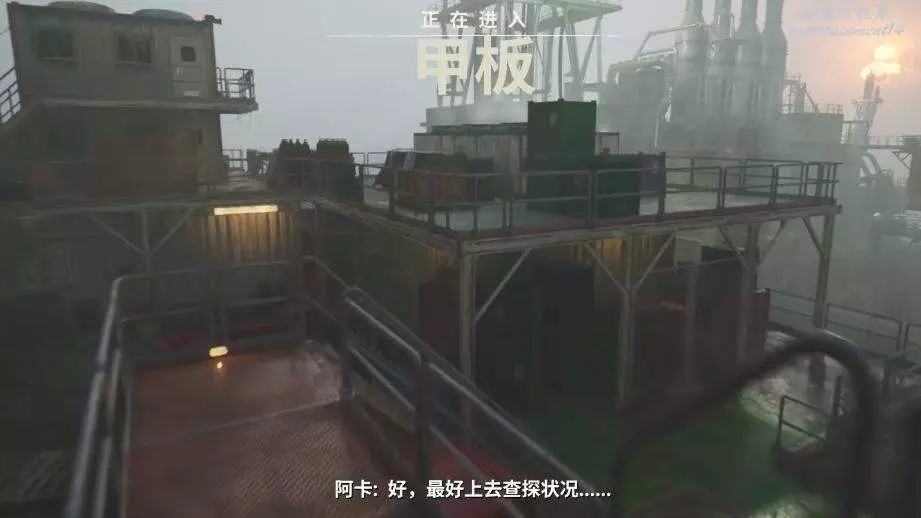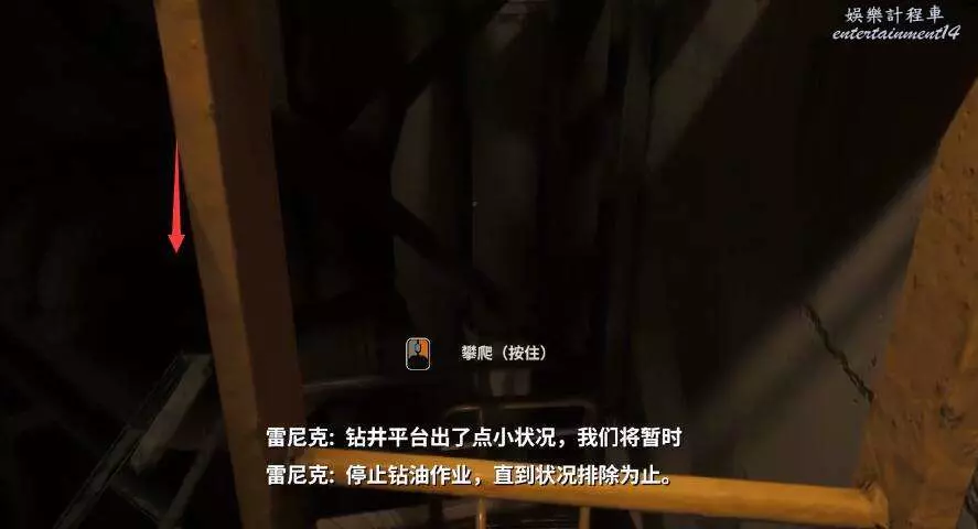 刷新任務,跟隨指引穿越加班前往雷尼克的辦公室,甲板樓層壞掉,通過梯子爬下去。