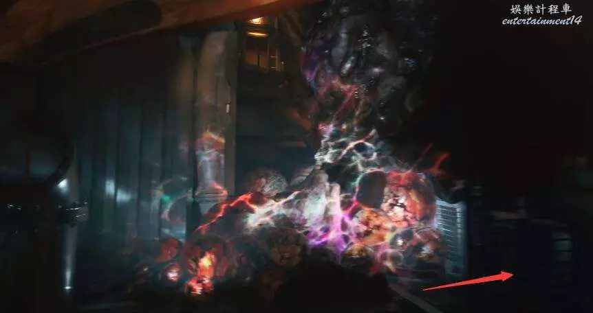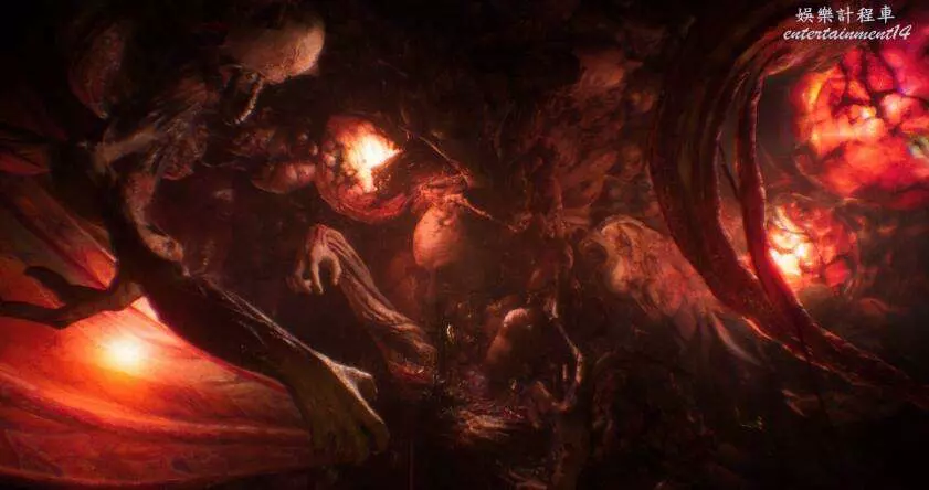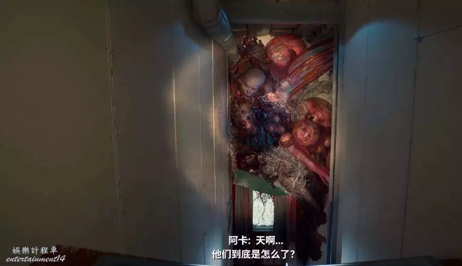下去救生艇搭乘區,看見一坨有屍塊拼成的怪生物。