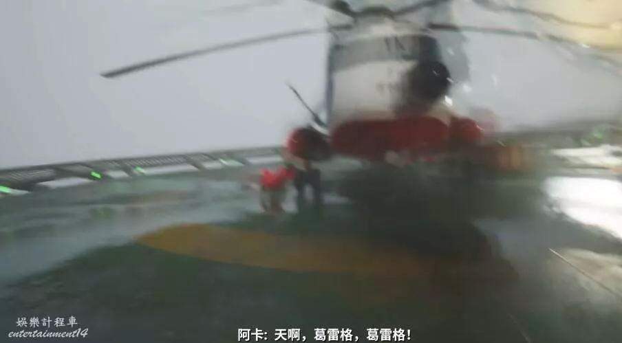 到停機坪下方找樓梯搭上直升機,然而上到直升機所在平台,阿卡突然眼前一花,葛雷格被摔下了甲板。