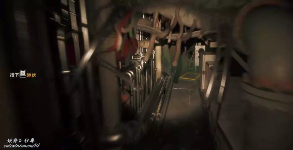 爬梯子上樓,看見房間裡有不可名狀的生物,進不去跳下樓穿過管道,將閥門都關上。