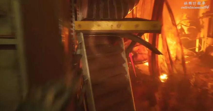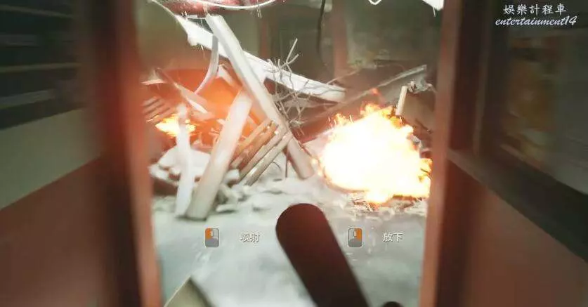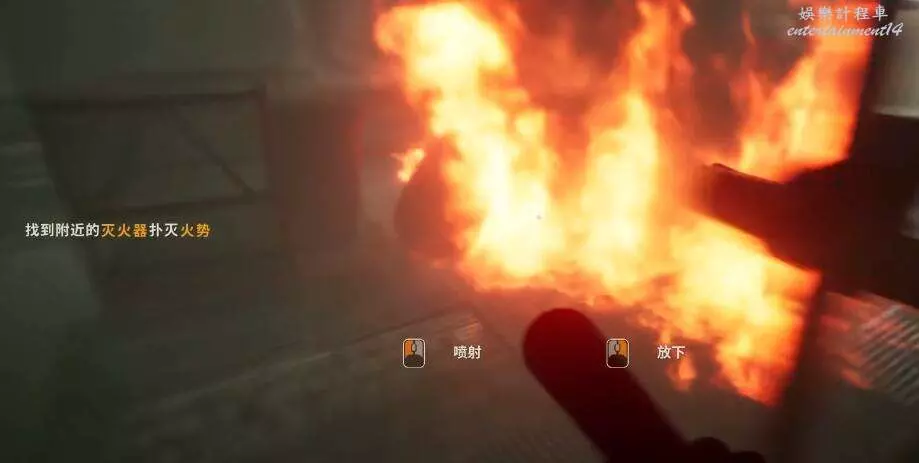 返回宿舍區,途中遇到火災用滅火器滅火。
