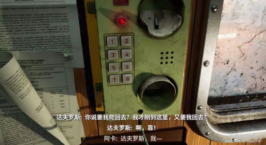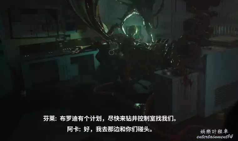 前往船舶控制室,路段挺陡峭的,需要注意抓緊,到了發現羅伯特已經被同化了,打電話給芬萊。