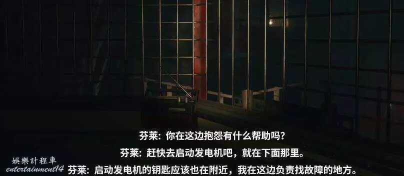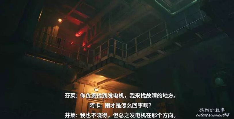 與芬萊對話分頭行動,她負責找到故障的地方,阿卡負責去發電機的位置發電。