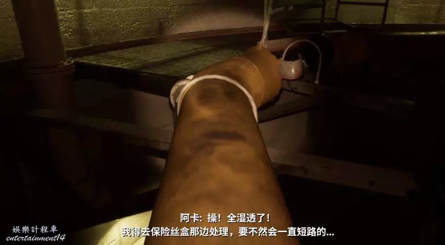 順著水槽設定的軌道前進,開啟閥門順著梯子往下,發現道格拉斯死掉了,背景音裡吉勃在不斷道歉。