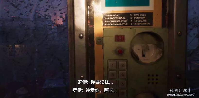 接到電話,又是阿珊的聲音,繼續往前,進入鑽井控制室與芬萊匯面。