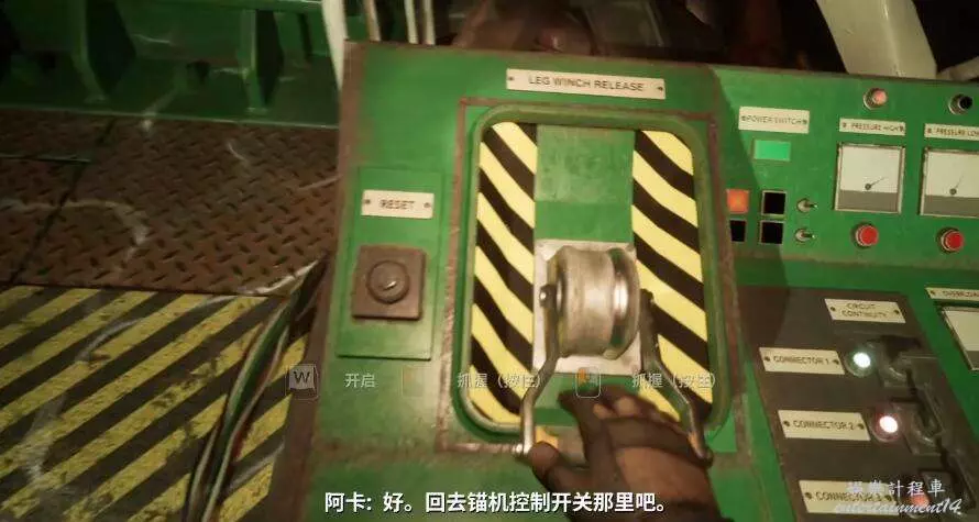 到下層鬆開制動器,而後回到方才的位置拉起潛水鐘,協助布羅迪處理潛水鐘的任務。
