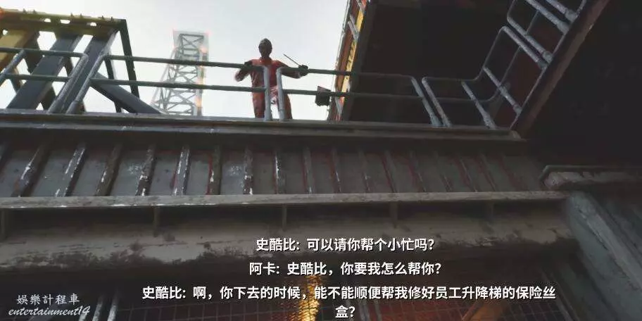 途中能跟一起工作的老夥計對話,到電梯口史酷比問阿卡能否幫忙修好員工升降梯的保險絲盒。