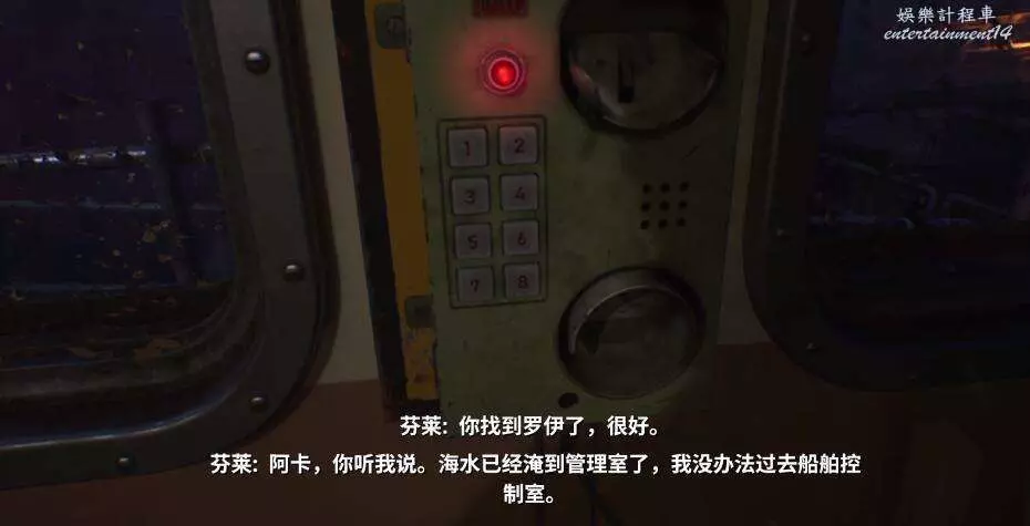 接到芬萊的電話,海水已經淹到管理室了,她沒法去船舶控制室,她需要阿卡的幫忙。