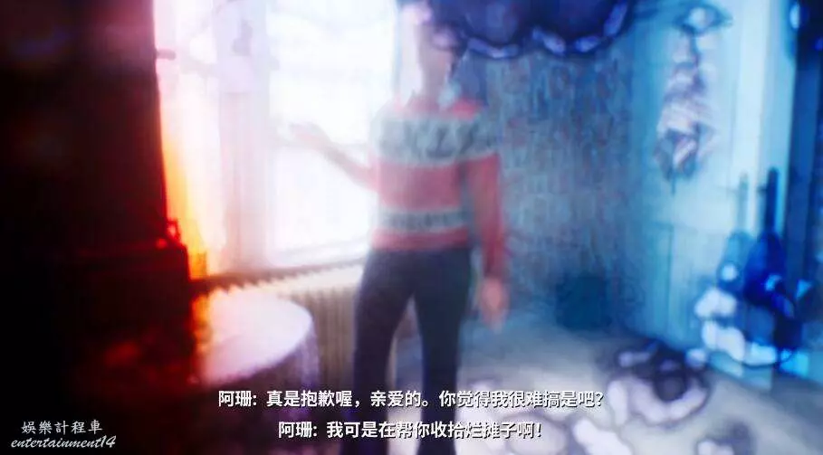 阿卡陷入混沌的視角,看見阿珊在吐槽阿卡的工作,不管女兒只知道逃跑。
