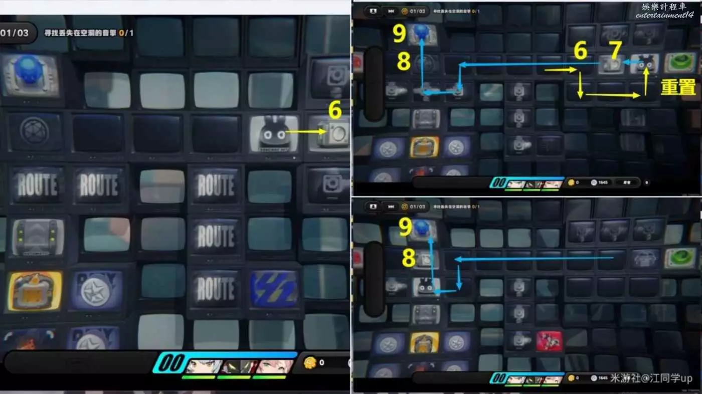 5.接著從下面過去,將7區域的箱子推到9區域,如果推錯了,右邊綠色按鈕為重新開機按鈕