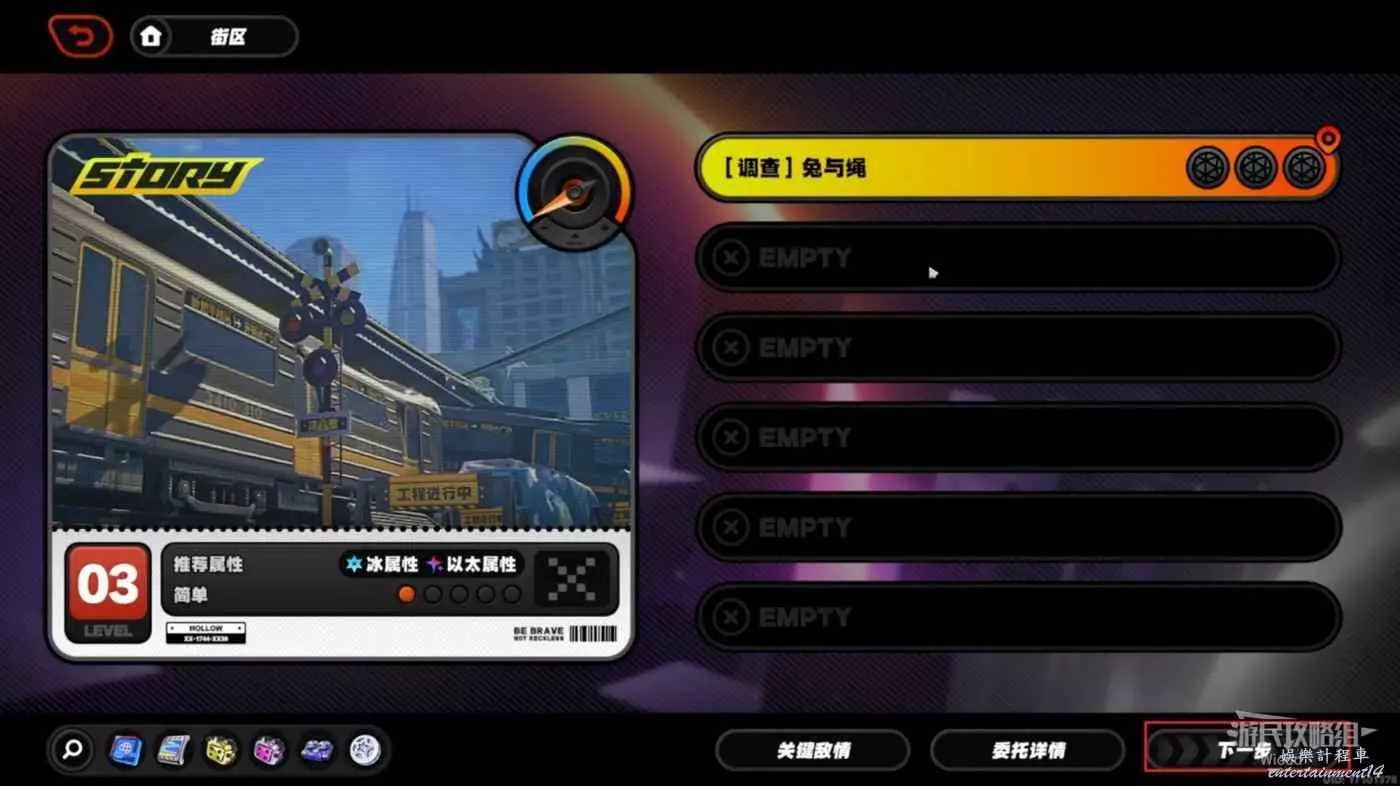 隨後與旁邊的電腦【空洞深潛系統】互動,選擇【劇情委託】-【兔與繩】最後選擇下一步進入關卡。