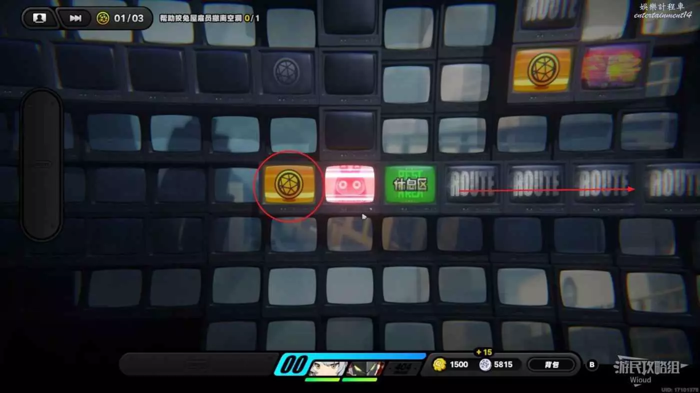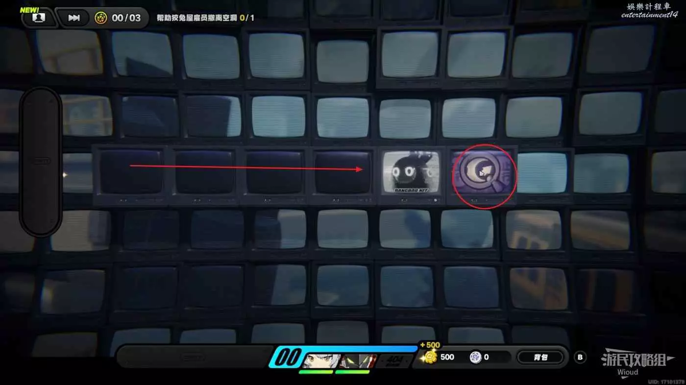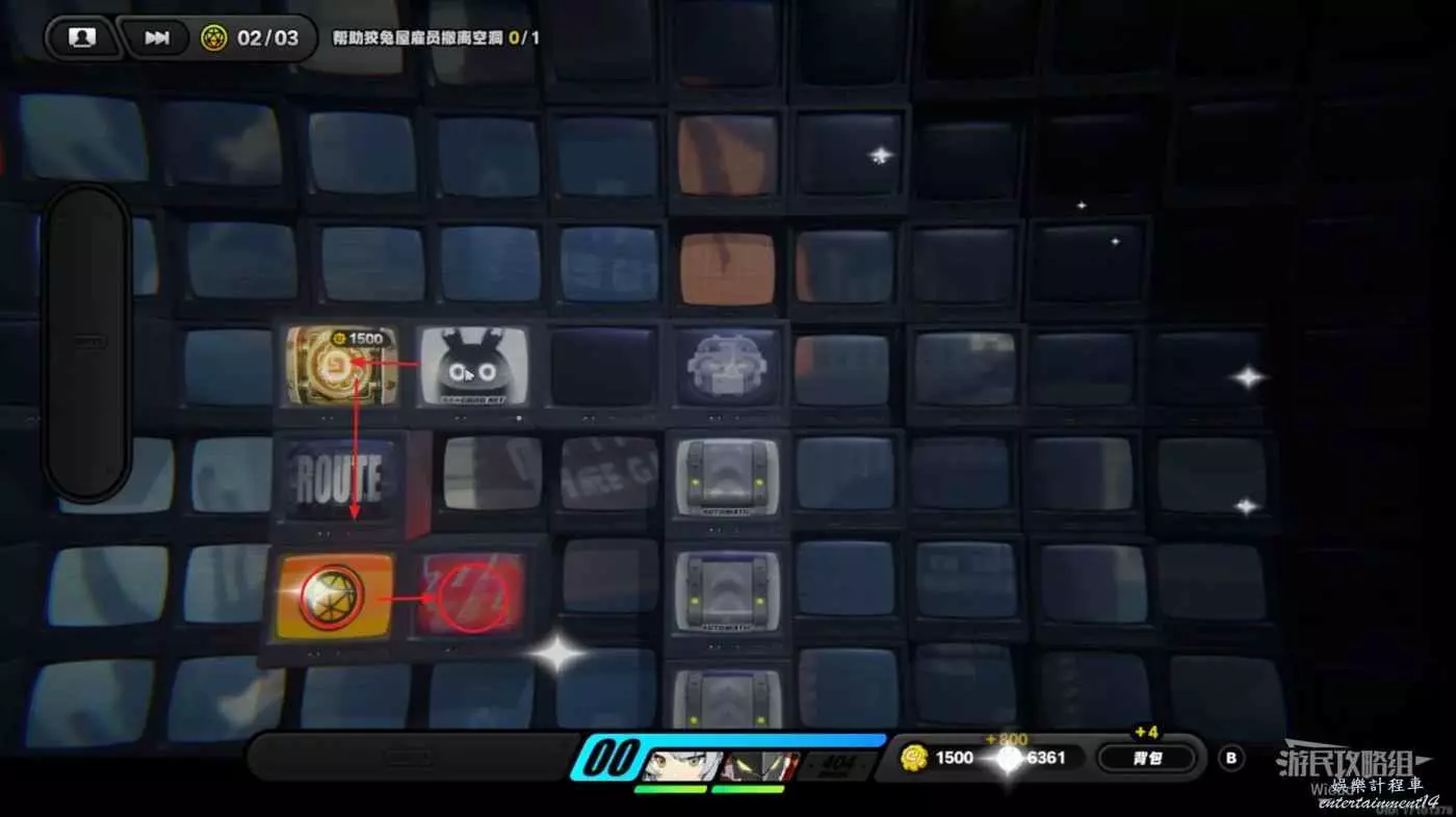 開啟右側的格子後先往右前進一個獲得一個【觀測資料】,只需要將電視中的邦布移動到播放獎勵圖示的電視上就可以獲得這個獎勵。
