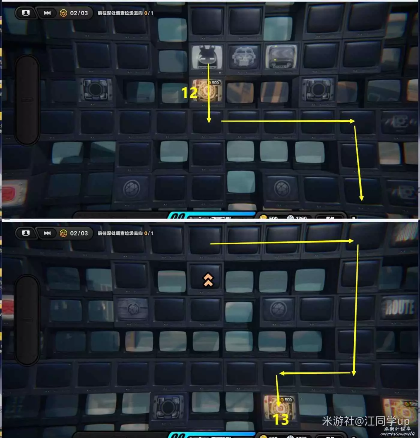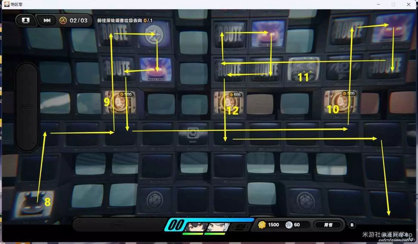 (4)接著先去9房間裡轉一圈,再去10房間裡轉一圈後,從11傳送帶進去12房間,然後從12房間出去後,去下面(這樣走不用花錢開12門)