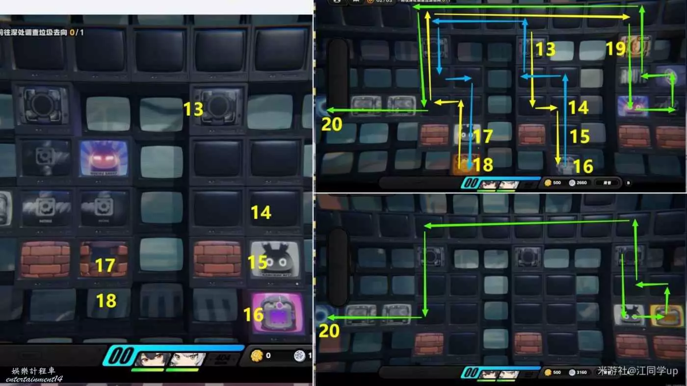 (6)進去13房間後轉一圈,其中15區域需要在14區域多撞幾次後,就可以下到15區域,16區域是隱藏區域,當下到15區域後,16區域寶箱會顯示出來,然後去18區域,18區域和16區域一樣,最後再去19房間轉一圈後,去20區域傳輸