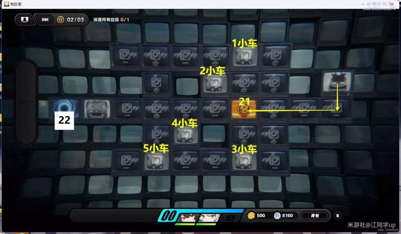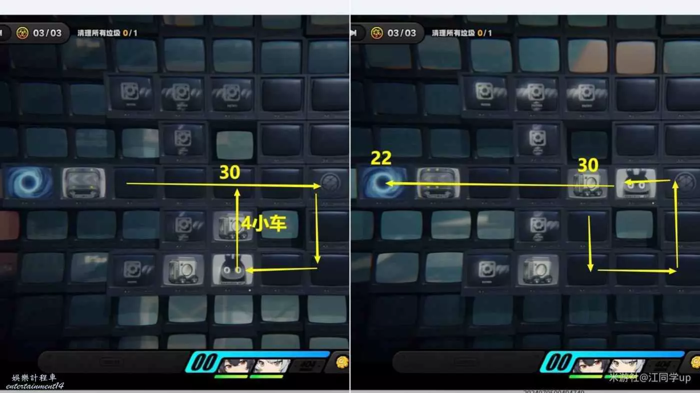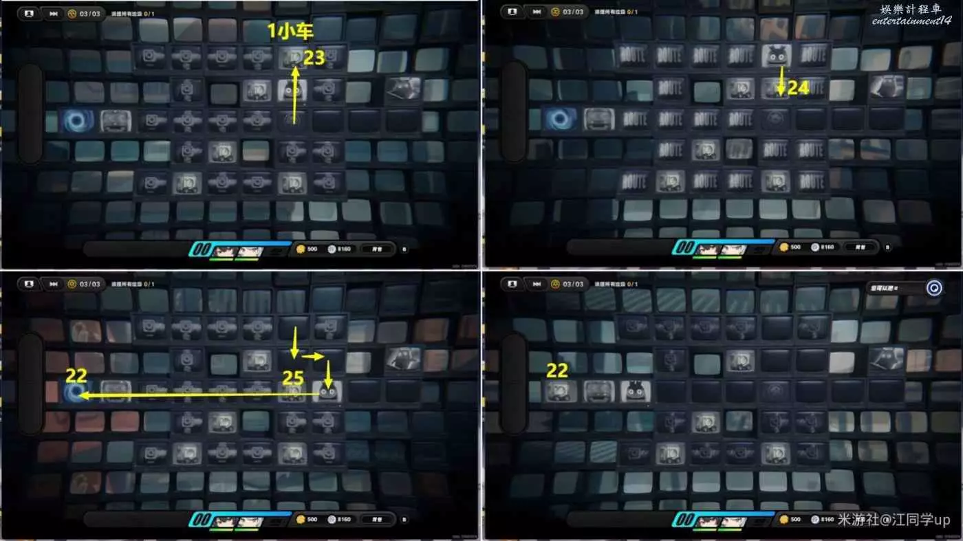 (8)首先往23區域走,就會自動將1小車換到下面24區域,接著再將1小車推到25區域後,再從25區域右邊即可將1小車推進22區域裡面