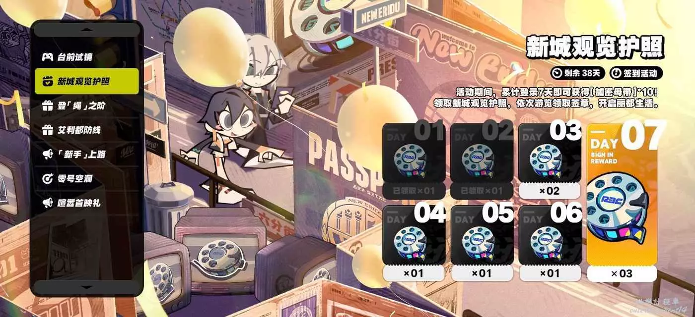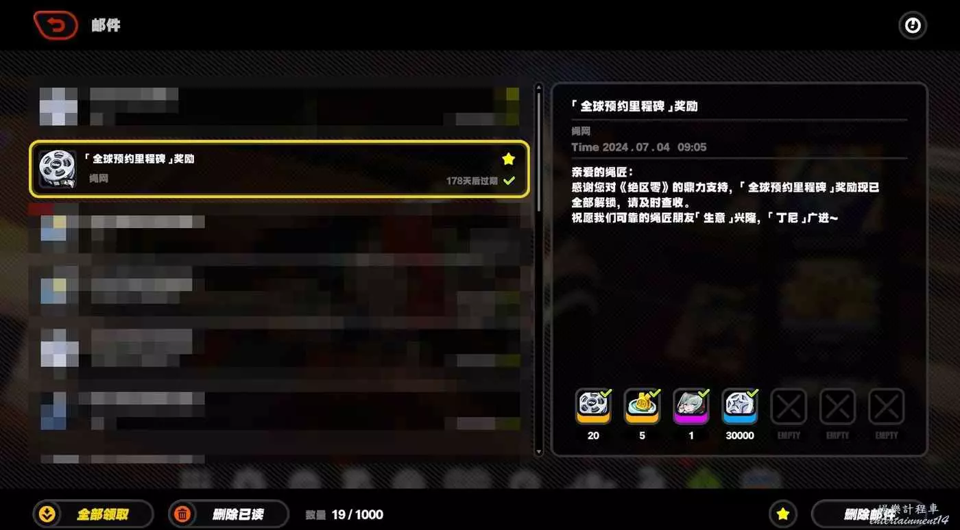 登錄後在郵件中領取,原裝母帶×20、邦布券×5、丁尼×30000、A級代理人可琳×1