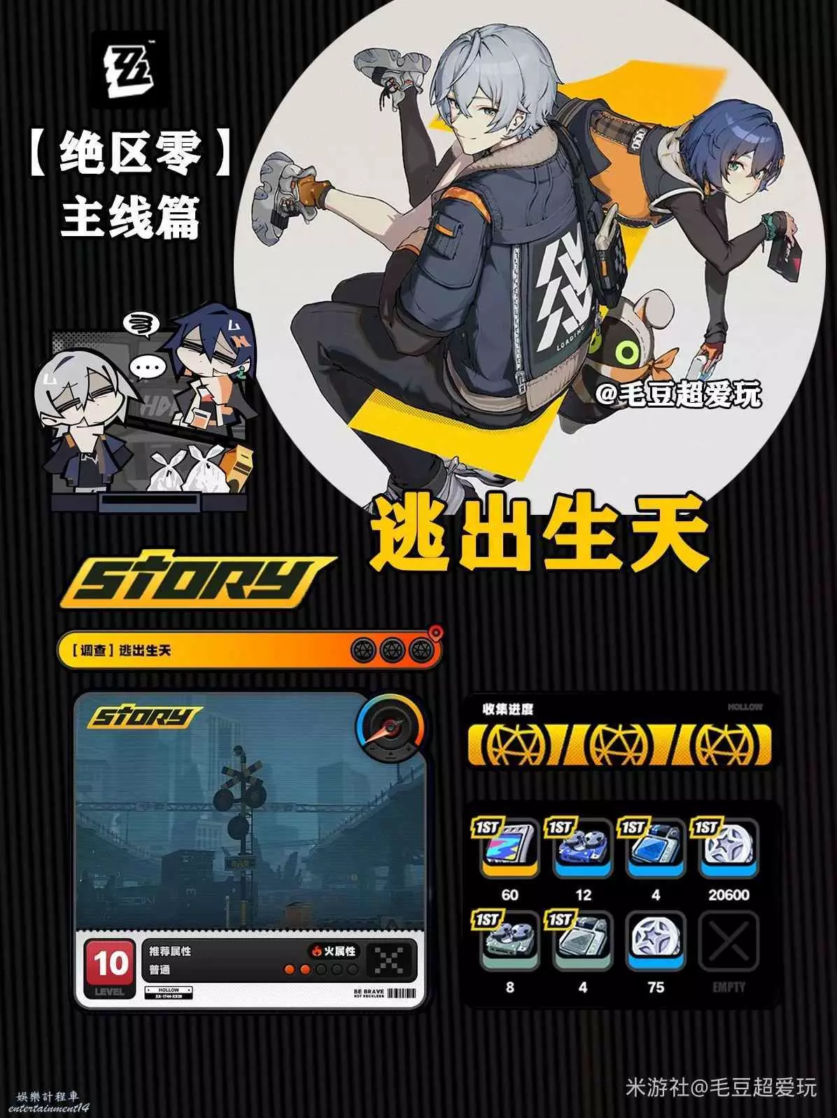 絕區零 (Zenless Zone Zero) 逃出生天主線資料與物資箱收集攻略 6 7 月 2024-07-06 廣告 作者:毛豆超愛玩 來源:米遊社論壇 觀前提示 會標註走格子的路線,部分資料、物資箱會隱藏,需走到特定格子才會顯現!物資箱獲取進度可通過“空洞深潛系統”的“劇情委託”或者“探索委託”,選中對應的副本後點“委託詳情”查看,劇情以及戰鬥過程就不再贅述了。 詳細路線(共計3個資料,4個物資箱) 資料1 資料2 資料3與紫物資箱*2 金物資箱*2