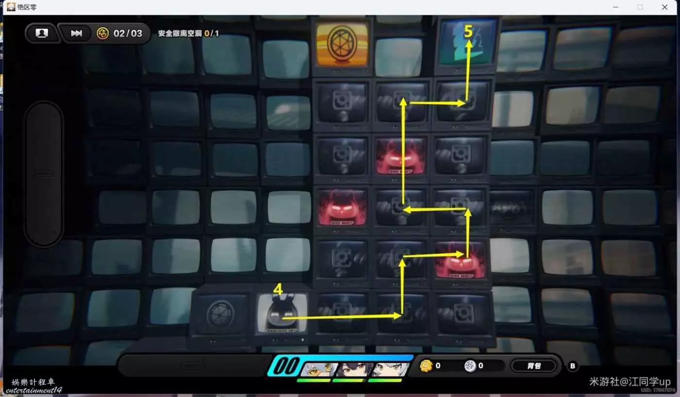 (5)接著按照下圖路線走去5區域即可,圖中3個紅色敵人會不斷移動追擊我們,按照下圖路線走,敵人就不會追上我們,如果被追上,就不能獲得攻略開頭說的隱藏成就《安全距離》