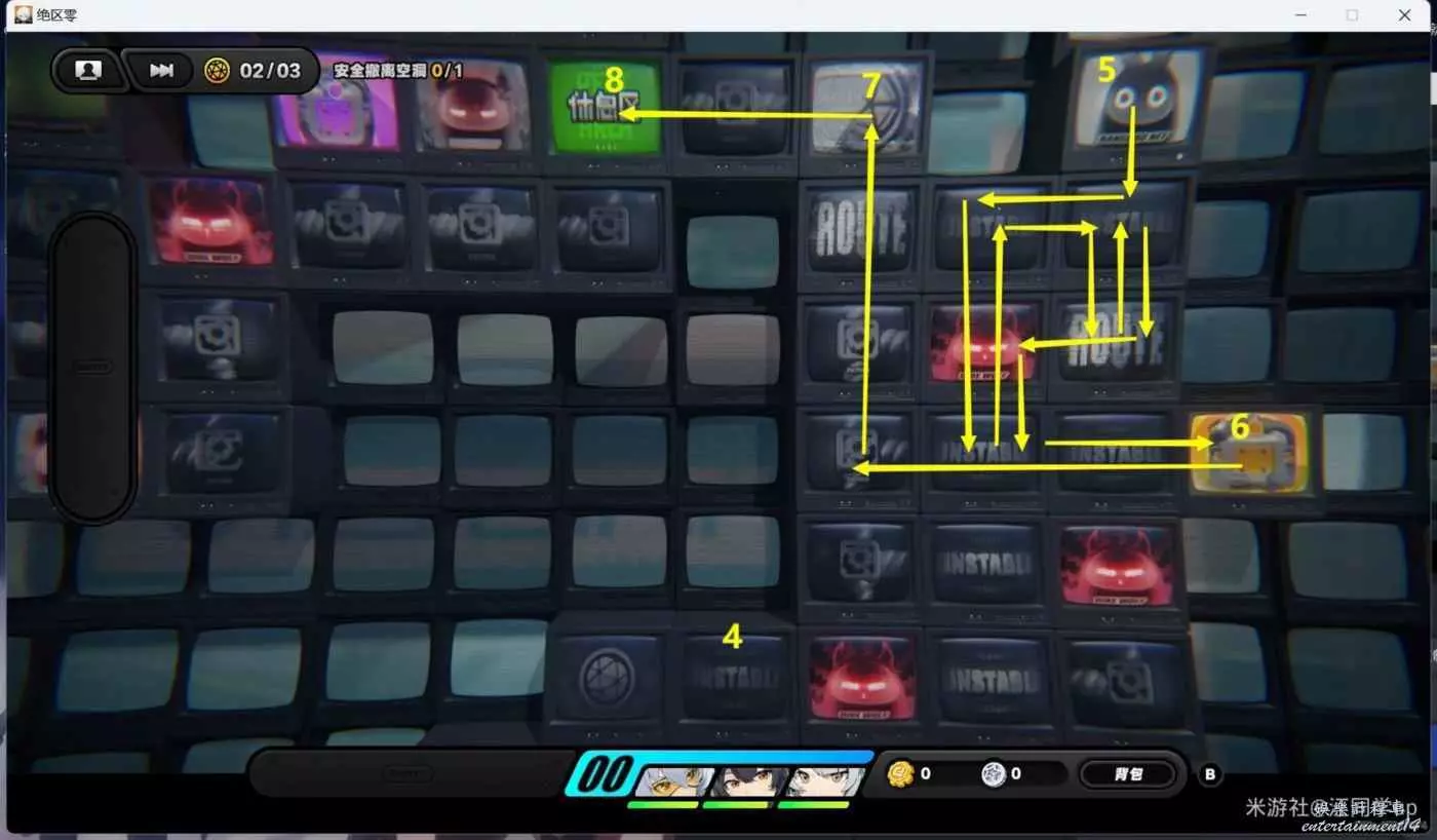 (6)接著繼續按照下圖路線依次去5-8區域即可,這樣走敵人不會追上我們