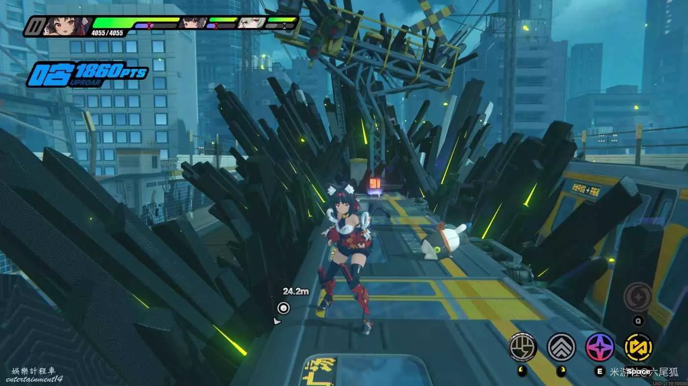 在第一個大怪指示點前不要隨指引先過去,車廂上連續左拐有一個回滿終結技的道具。