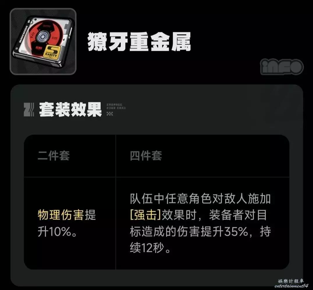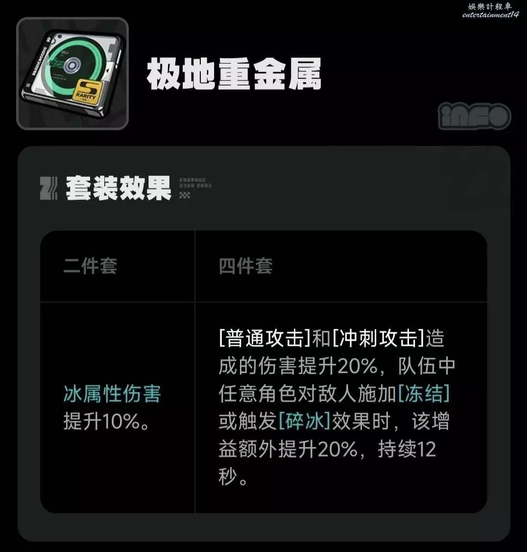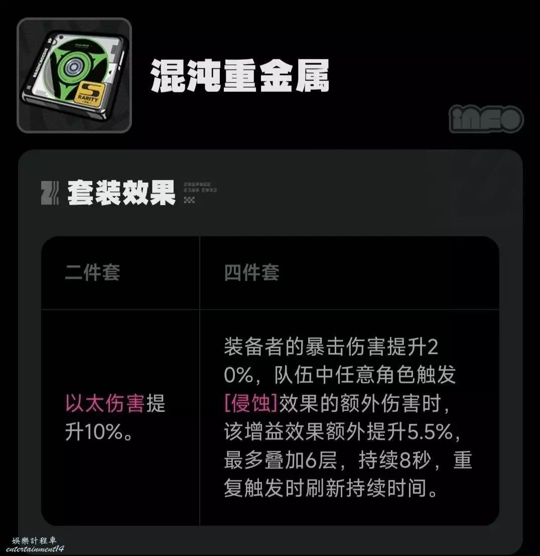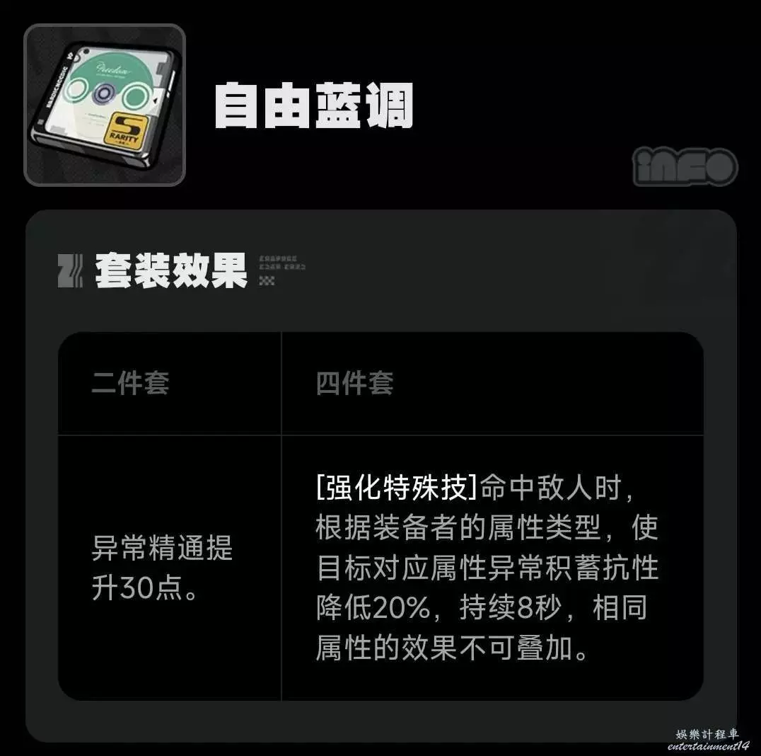 適配角色:異常流專用套裝;輔助和輸出角色屬性相同時也可使用(如艾蓮和蒼角,蒼角使用4件套)。