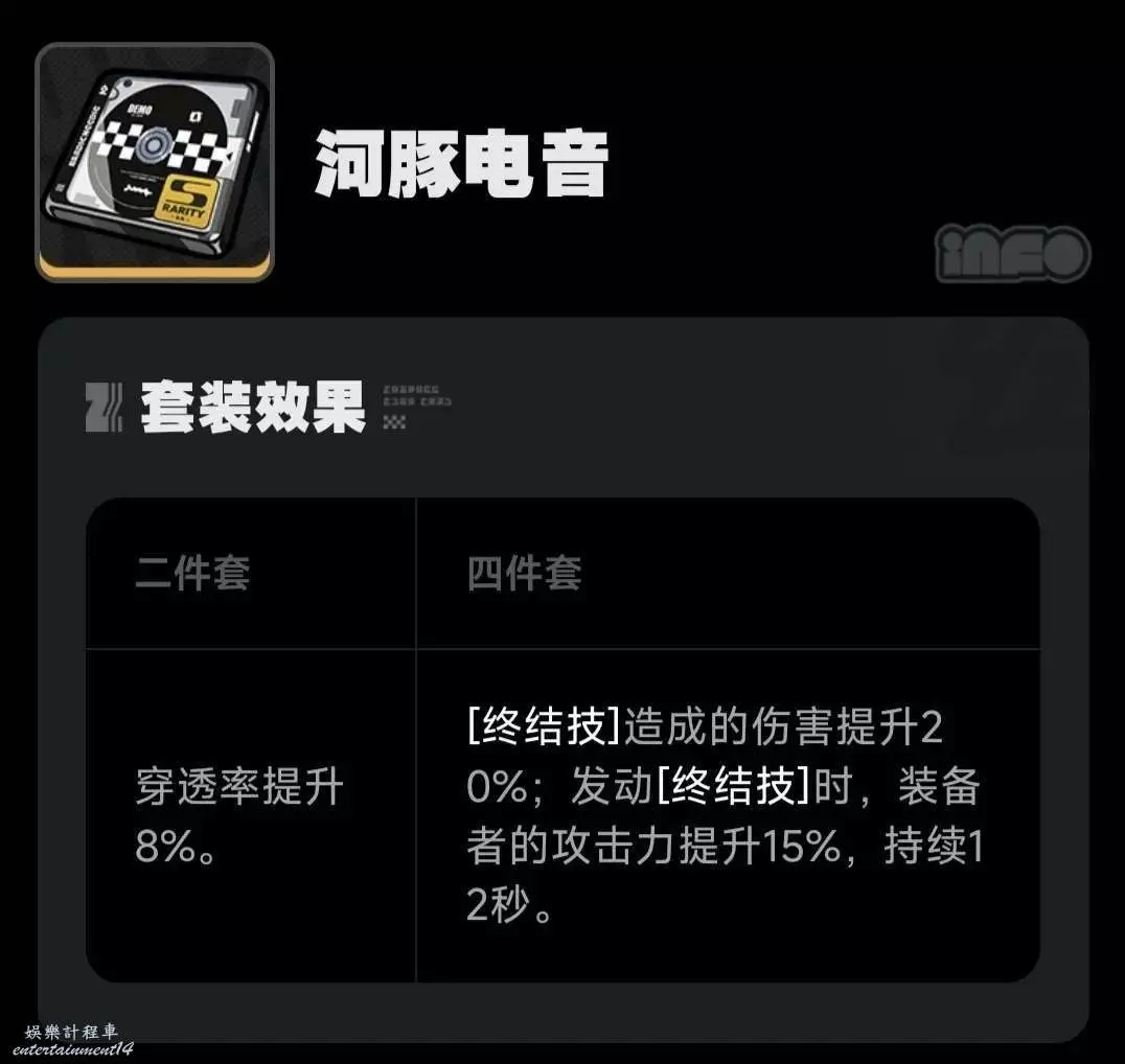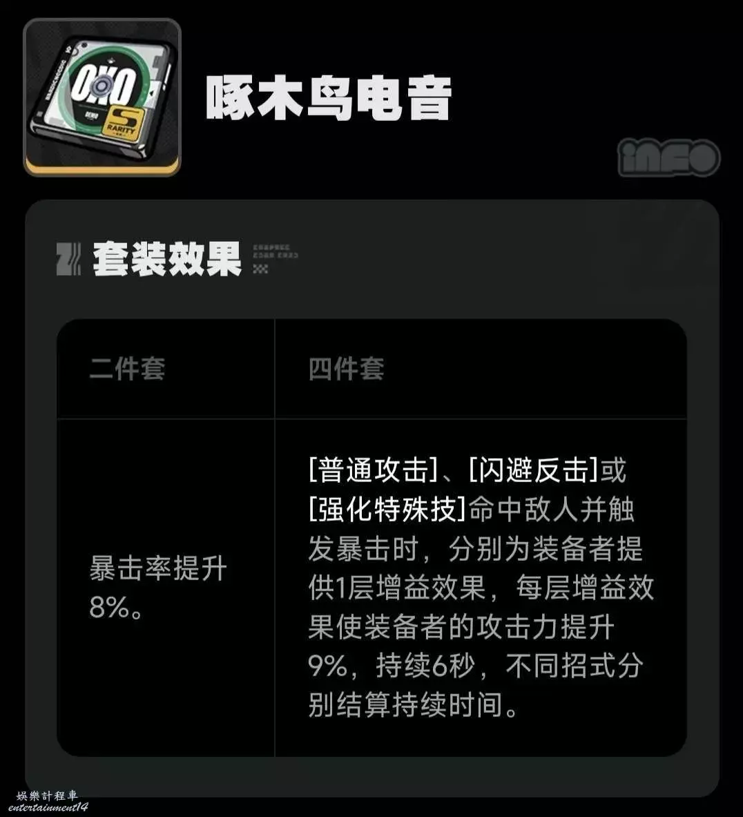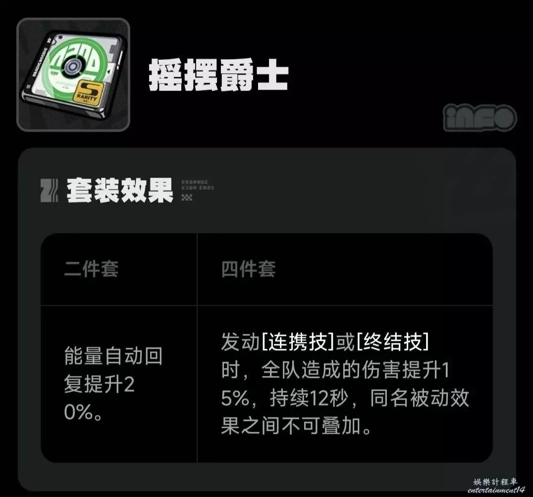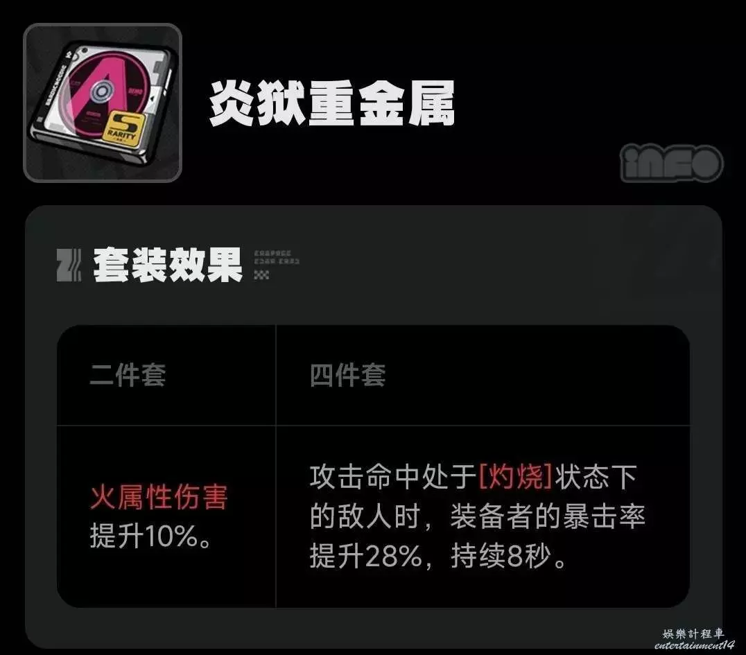 適配角色:異常流專用套裝;輔助和輸出角色屬性相同時也可使用(如艾蓮和蒼角,蒼角使用4件套)。