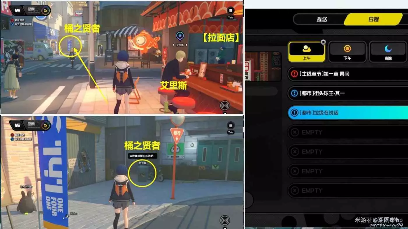 (1)上午時間段,點擊【拉麵店】傳送過去後,和【拉麵店】前的【艾裡斯】對完話後,即可獲得1個【調查協會紀念幣】,同時會接到任務【垃圾在說話】